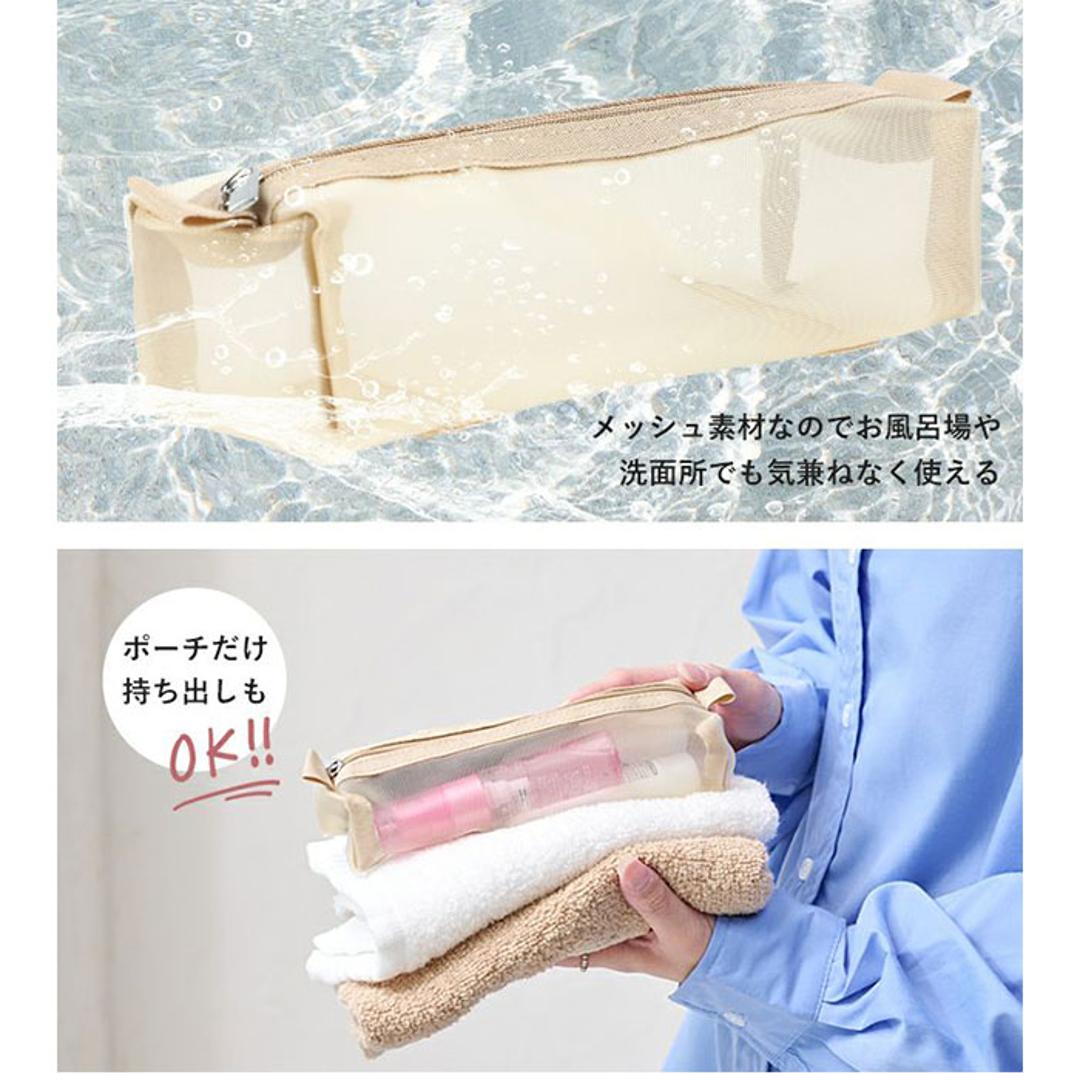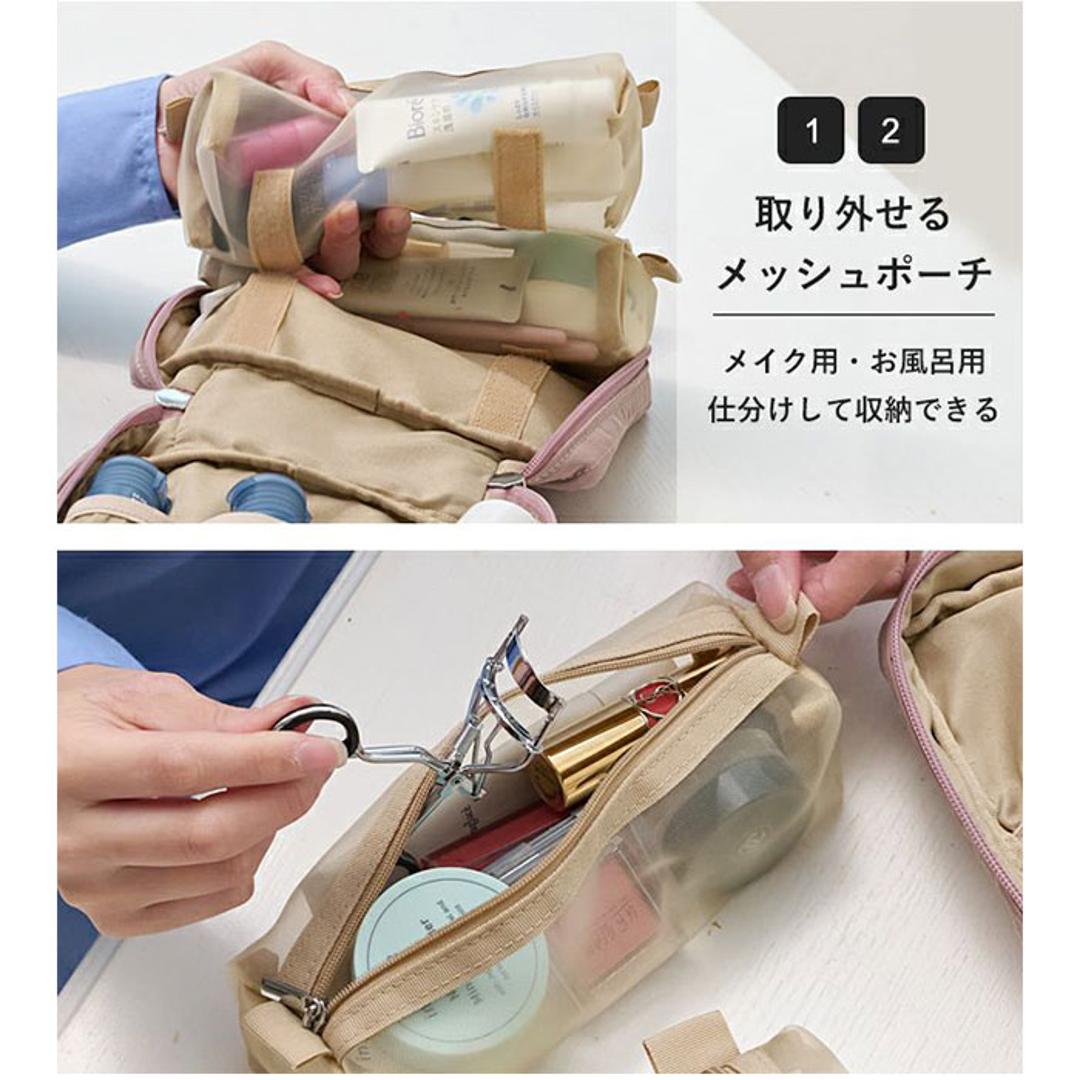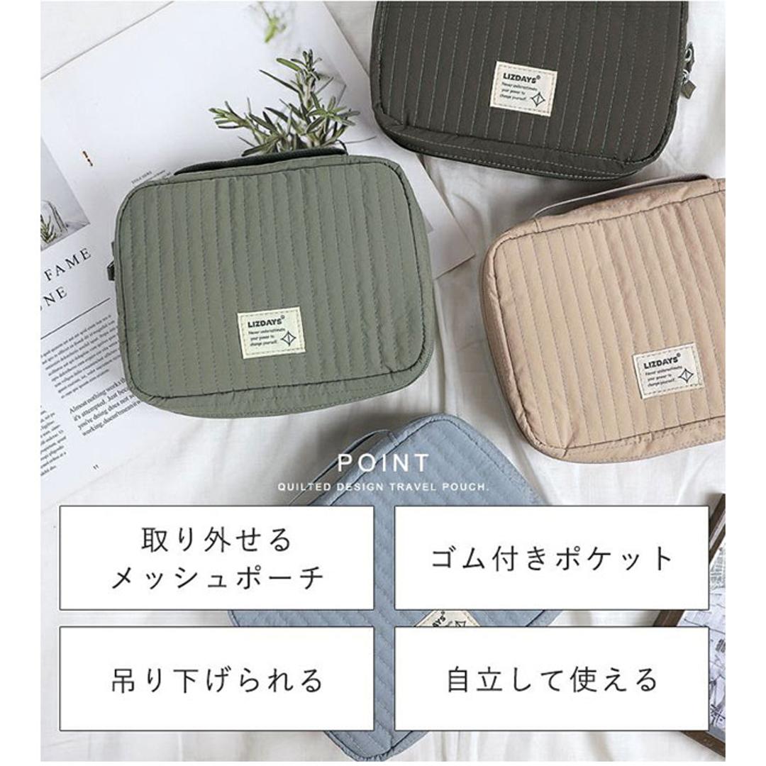 | 商品説明 | 【旅を快適にサポート!多機能ポーチ】 ・トラベルアイテムを、仕分けてながらたっぷり収納!「LIZDAYS マルチポーチ」。 【ポコポコ可愛いキルティング】 ・ふんわり感のあるキルティングデザイン。シンプルで大人女子にぴったりの仕上がり。 【水回りでも慌てない撥水性をプラス】 ・サラリとしたナイロン素材に、水滴や汚れを弾く撥水加工済み。ちょこっと水がはねても大丈夫。 (※)防水仕様ではありません。 【スペースの限られた洗面でも快適】 ・360度回転式S字フックを使ってホテルの洗面台などに吊り下げれば、便利な壁掛け収納に。 【自立させてテーブルでも使いやすく】 ・反転させて、面ファスナー同士をくっつけると自立。取り出しやすく、場所を選ばない♪ 【ガバっと開いて出し入れスムーズ】 ・左右どちらからも開くダブルファスナーで、180度オープン。使いたいアイテムが一目瞭然◎ 【コスメもスキンケア用品も一緒に】 ・多くのポケットを装備。コスメはもちろんスキンケアのボトル類、歯ブラシなどもひとまとめ。 【取り外し可能なメッシュポケット】 ・通気性に優れた2つのメッシュポーチは、面ファスナー着脱。仕分けしやすく単体使いも。 【程よくフィットするゴム口ポケット】 ・ボトルやミニスプレーなどをIN。大きさに合わせて伸縮し、こぼれ落ちにくくすっきり収納。 【迷子にならないファスナーポケット】 ・替えのコンタクトや絆創膏、常備薬など!細々した小物を入れておけて便利。 【手持ちできる軽やかなバッグ型】 ・軽量で外側上部に持ち手付き。手に取りやすく、旅先の大浴場や温泉などへの移動もラクラク。 【お気に入りを選べるカラー】 ・ベーシックや柔らかなカラーに、ロゴタグをON。使う人を選ばない仕上がりで贈り物にも。 【ポケット仕様】 ・内側:メッシュポケット×2(取り外し可能)、ゴム口ポケット×3、ファスナーポケット×1 |