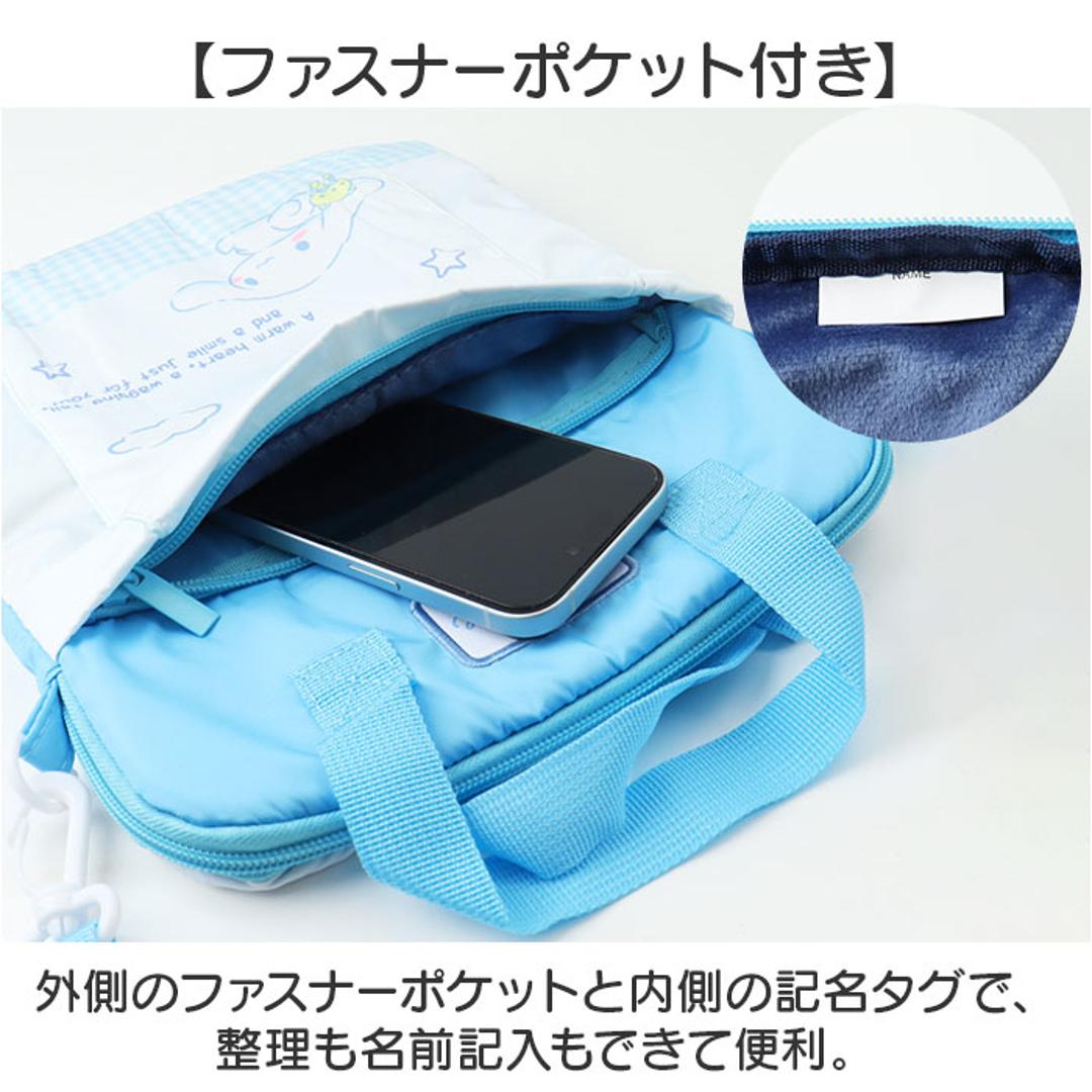 ・手持ちとショルダーの2通りで使えて、ランドセルにもすっぽり収まるサイズ感。