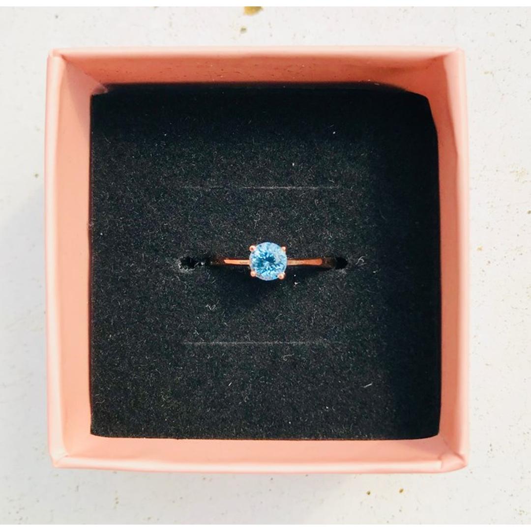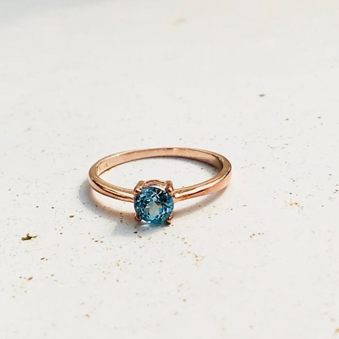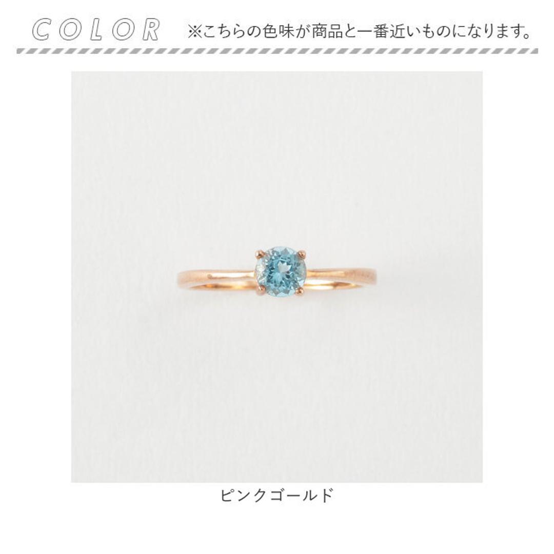 | 素材 | 【石】天然スイスブルートパーズ 約0.68カラット/直径4mm ラウンドブリリアントカット/トリートメント処理済 【リング】ピンクゴールド色/18Kゴールドプレート 【土台】925シルバー |