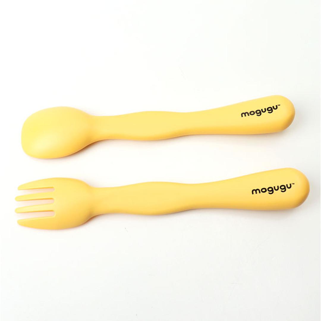・太めの持ち手と食べやすい形状で食事が楽しくなる「mogugu カトラリーセット」。