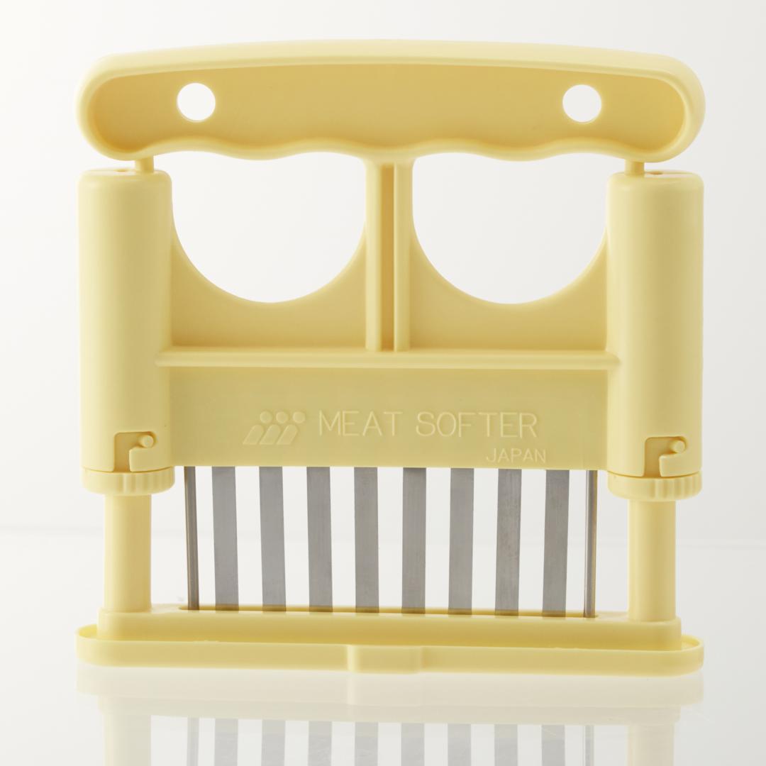商品説明牛肉・豚肉・鶏肉等あらゆる固い食肉の繊維やスジをカットし、肉をやわらかく食べやすくする肉の筋切器ミートソフター。