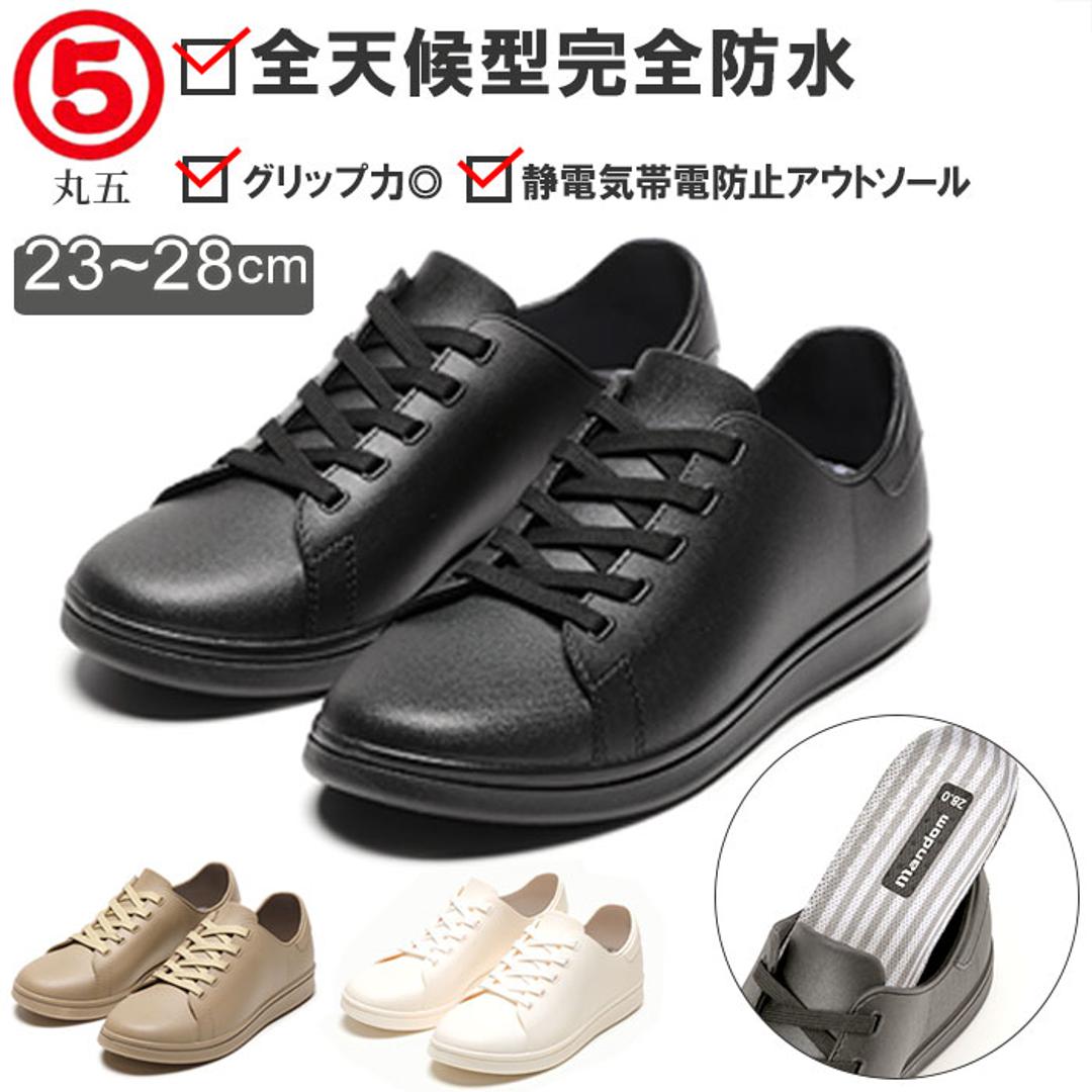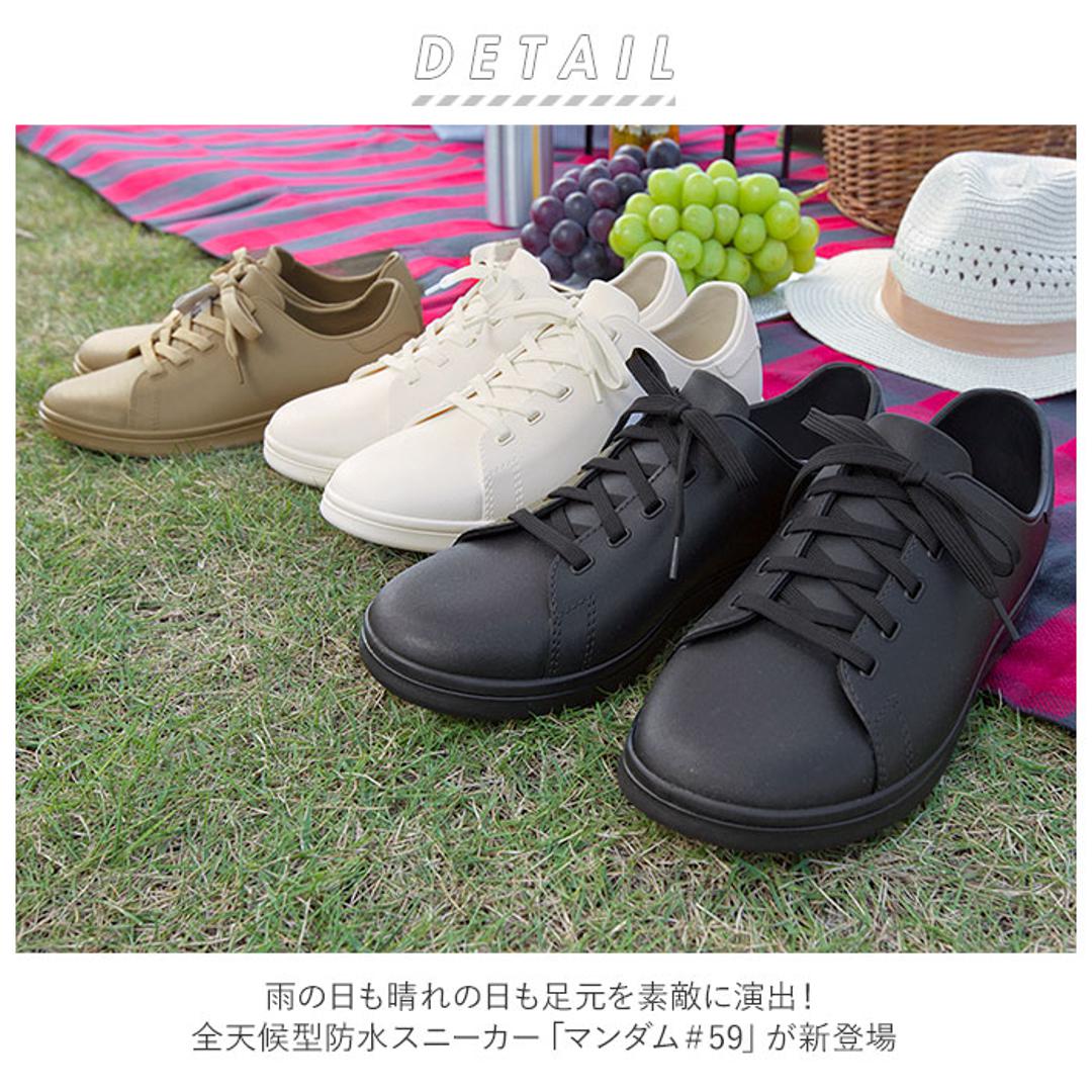 | 商品説明 | ・雨の日も晴れの日も足元を素敵に演出!全天候型防水スニーカー「マンダム#59」が新登場。 ・レインシューズに見えないカジュアルなルックスで、「濡れるのは嫌だけど、長靴は野暮ったくて・・・」と思っていたお洒落さんに最適! ・アウトソールとアッパーは、水濡れに強いPVC素材で一体成型。シュータン部分も内側で繋がっているため、雨の侵入をシャットアウト。 ・泥汚れはサッと水で洗い流すだけで簡単にOFF! ・クッション性のあるインソールで歩きやすさも抜群。お手入れの際はインソールの取り外しが可能。 ・アウトソールには静電気帯電防止ソールを採用。さらにしっかりと溝の刻まれた靴底で、ぬかるんだ道や湿って滑りやすいフロアーでも抜群のグリップ力。 ・ボディーカラーと同系色のシューレースを合わせたシンプルデザインで、オンでもオフでもコーディネート自在。 23cmから28cmまでの幅広いサイズ展開で、男女ともにスタイリッシュに着用できるユニセックスモデル。 |