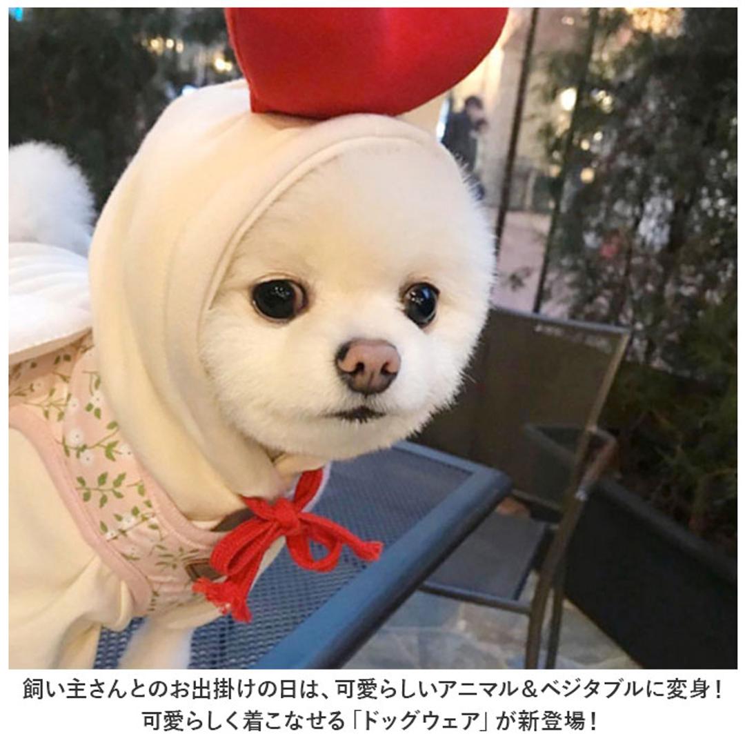 商品説明・飼い主さんとのお出掛けの日は、可愛らしいアニマル&ベジタブルに変身!可愛らしく着こなせる「ドッグウェア」が新登場!