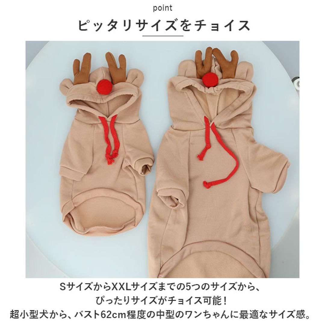 ・フードには、トナカイさんの角やかえるのお目々、リンゴの葉っぱを立体的に表現。ワンちゃんの誕生日やクリスマスパーティなどで、愛犬とご家族とのフォトジェニックな写真を撮りたいときにオススメ。