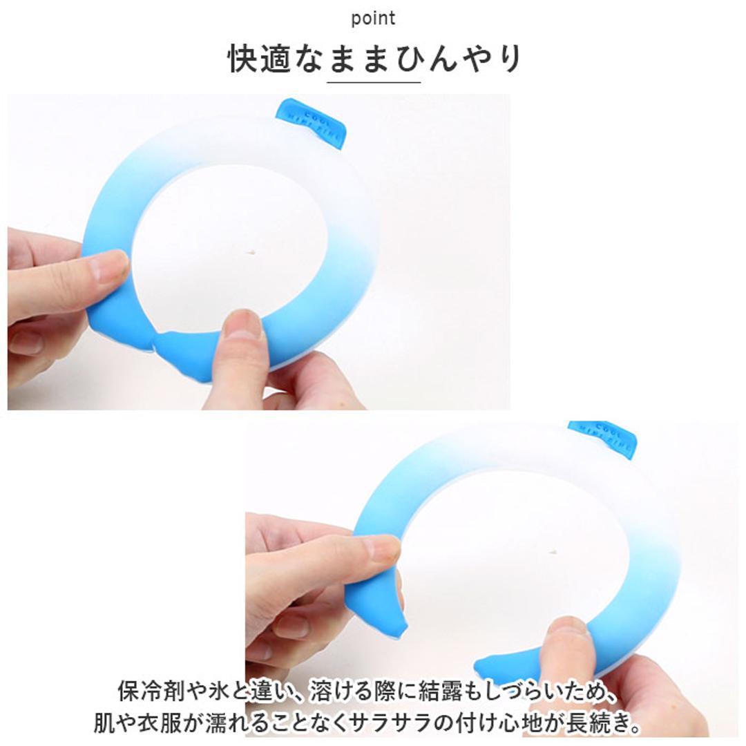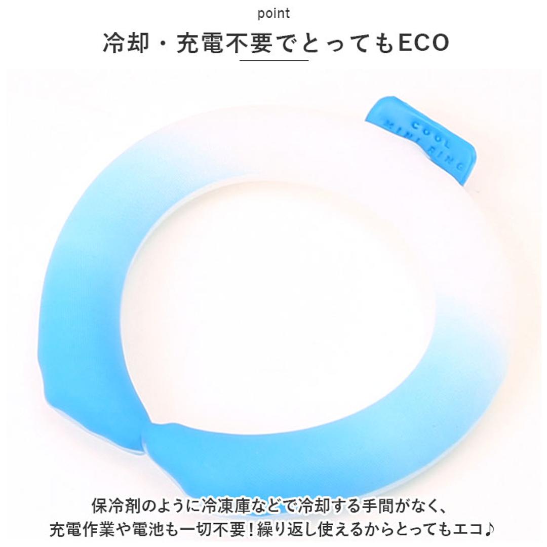 | 商品説明 | 28度以下に冷やすと固まる!!真夏でもふしぎな氷でひんやり涼しい「冷感ミニリング(腕・足首用)」が新登場。 【ひんやりが約90分持続】 ・身体全体を冷やすには、首筋や二の腕の内側の血液を冷やすことが効果的。アクアブルーのリングを足首や腕にはめるだけで、ひんやりクールダウン。(※28度以下で装着後、約1時間-1時間半程度冷たさが持続) 【28度以下で自然凍結】 ・リングの内部には、繰り返し熱と冷気を放出する新素材「PCM(パラフィンワックス)」を充填。28度以下で自然凍結し、快適な温度をキープ。 【腕や足首にサッとはめるだけ!】 ・装着方法はとっても簡単。リングの開口部を軽く開いて、腕や足首にはめるだけ!コンパクトで軽量だから、ウォーキングやスポーツ時でもジャマにならないのが嬉しいポイント。 【冷却・充電不要でとってもECO】 ・保冷剤のように冷凍庫などで冷却する手間がなく、充電作業や電池も一切不要!繰り返し使えるからとってもエコ♪(※28度以下でひんやりとした個体に変化しますが、冷凍庫で約20分、水温20度以下の冷水で約30分以上冷やせば、冷却時間の短縮が可能。) 【マイルドな冷たさ】 ・素肌に触れても冷え過ぎないマイルドな冷たさが特徴。お子さまのデリケートな肌にも安心。 【快適なままひんやり】 ・保冷剤や氷と違い、溶ける際に結露もしづらいため、肌や衣服が濡れることなくサラサラの付け心地が長続き。 【真夏の猛暑対策に!】 ・アウトドアやスポーツ、真夏のお出掛け時の熱中症対策に大活躍!ご自宅でのひんやりリラックスタイムにも最適。 |