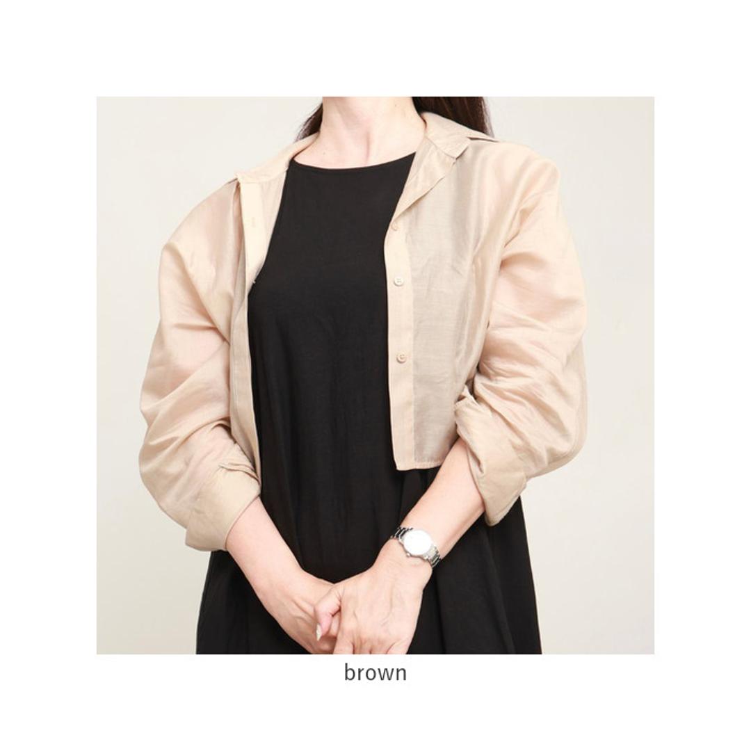 | 商品説明 | ・暑い日差しや冷房対策にもぴったりなシースルーシャツ! ・柔らかな肌触りと少しツヤがある生地は、カジュアルになりすぎず大人コーデにぴったり。 ・お袖はドルマンスリーブなのでゆったり。 ・丈は短めなので、ボタンは留めずにワンピースやパンツに羽織ってお召しいただいた方が綺麗なバランスに。 ・小さく折りたためるので羽織ものとして持ち運びも便利。 ・※grayのお色は光によって、カーキ色のように見える場合あり。 |
