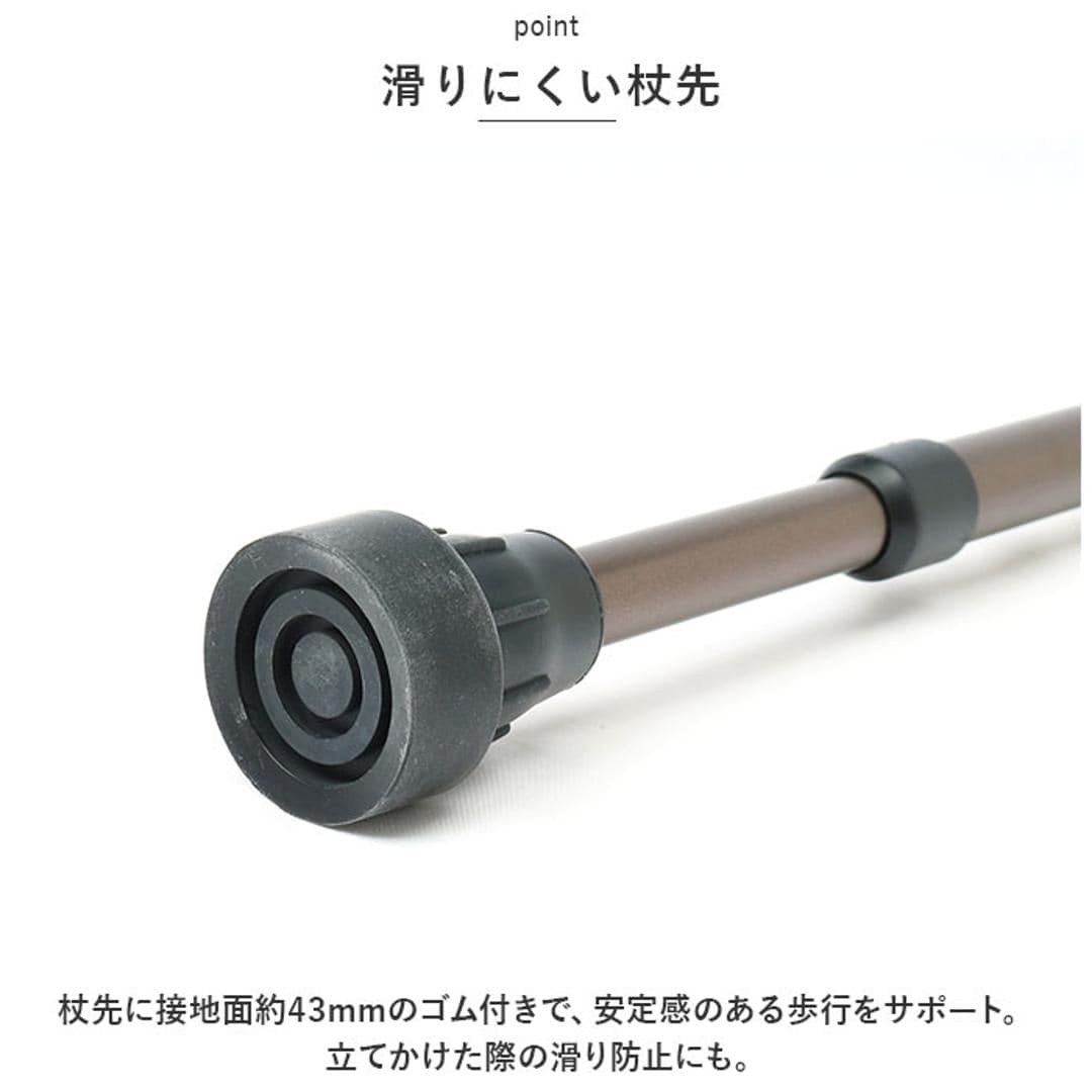 ・杖先に接地面約43mmのゴム付きで、安定感のある歩行をサポート。立てかけた際の滑り防止にも。