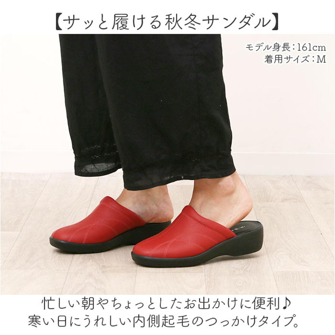 | 商品説明 | 【サッと履ける秋冬サンダル】 ・忙しい朝やちょっとしたお出かけに便利♪寒い日にうれしい内側起毛のつっかけタイプ。 【ひやっと感軽減】 ・内側の甲周りから指先まで起毛パイル地を使用しているので、底冷えする日も安心。 【軽やかな履き心地】 ・片足約190gの軽さで長時間履いても疲れない◎※Mサイズの片足分の重量です 【快適な歩き心地】 ・耐摩耗性に優れたPUソールを採用。優れたグリップ力で安心感のある設計。 |