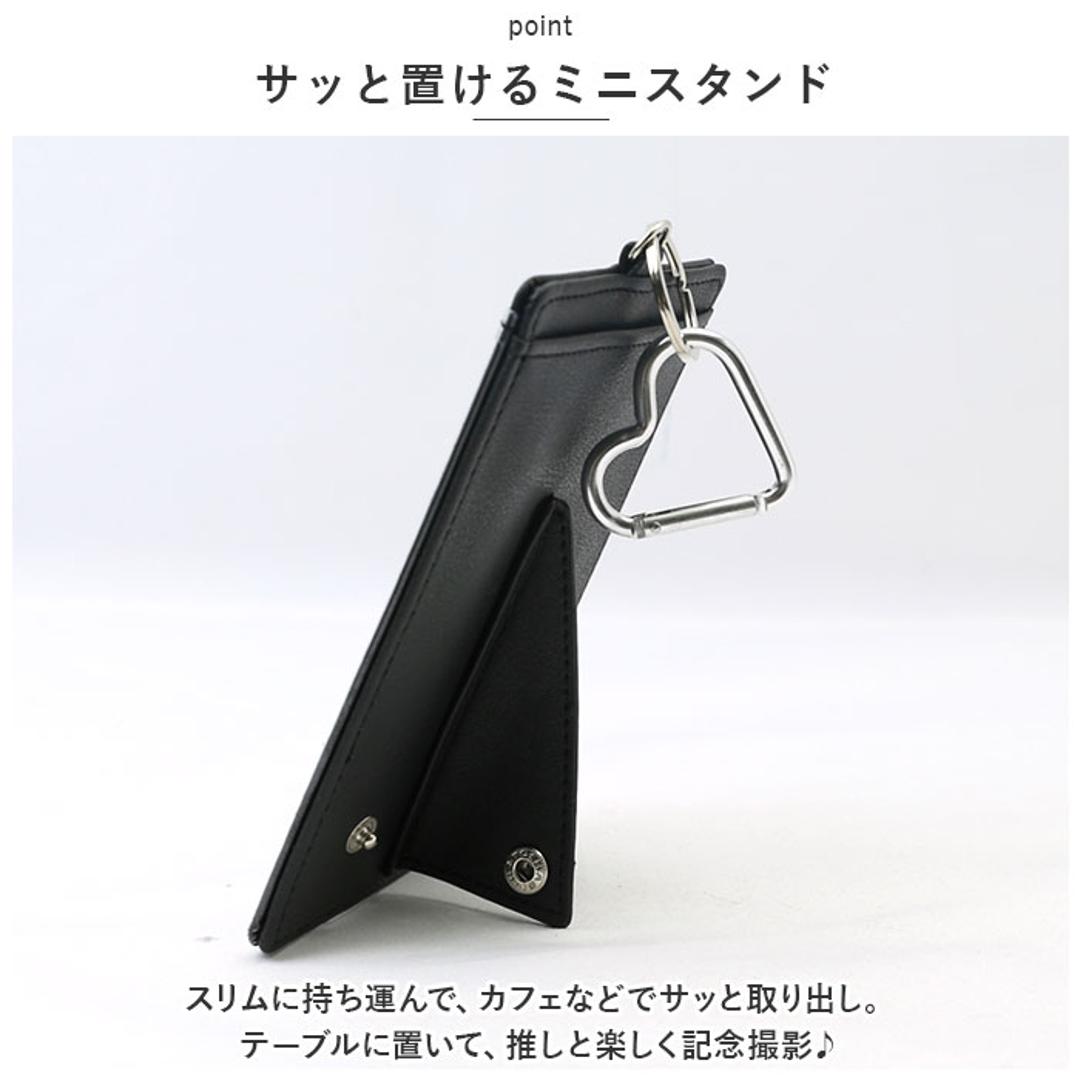 | 商品説明 | ・推し活のマストアイテム☆おしゃれに持ち運べる「生写真スタンドケース」が新登場。 【大人な仕上がり】 ・ソフトな質感のPU素材を使用。一見推し活グッズ用とは思えない、おしゃれなデザインがポイント! 【使い方を選べる2wayタイプ】 ・ハート型のカラビナを使って、バッグに取り付けるキーホルダーに!背面のスナップボタン式スタンドを開いて、スタンドに。お好みで使い方を簡単チェンジ☆ 【推しをアピール】 ・表面はクリアポケット仕様なので、お気に入りの写真をIN。 【背面ポケット付き】 ・背面にも、写真やミニアクスタを収納できるポケット付き。あまりアピールしたくないシーンでは、こちら側を表に! 【サッと置けるミニスタンド】 ・スリムに持ち運んで、カフェなどでサッと取り出し。テーブルに置いて、推しと楽しく記念撮影♪ 【いつも一緒にお出かけできるキーホルダー】 ・バッグのハンドルなどに手軽に取り付け。ライブなどでも大活躍! 【推しカラーをチョイス】 ・推しカラーやお好みに合わせて選べるバリエーション!シンプルな無地デザイン。 |