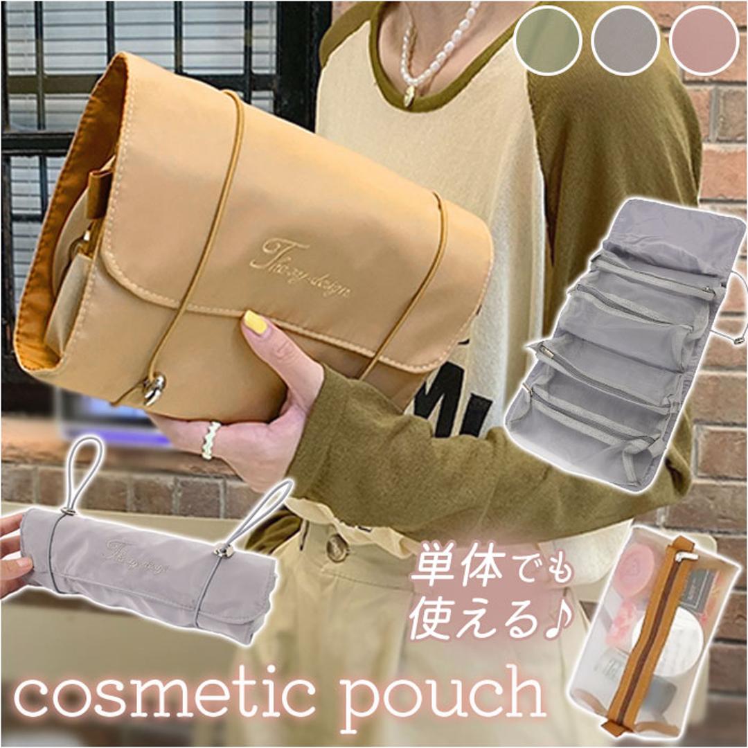 4つの小さなポーチは、トラベルポーチ本体から面ファスナーで切り離すことができ、それぞれ単体のコスメポーチとしても使用可能。