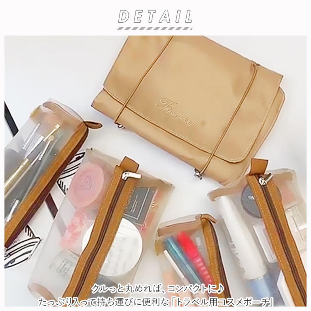 商品説明・クルっと丸めれば、コンパクトに♪たっぷり入って持ち運びに便利な「トラベル用コスメポーチ」