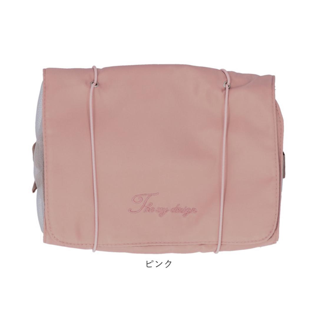 ・かさばるコスメ類もクルっと丸めてひとまとめに。ゴムバンドでパチンッと留めれば、旅行カバンの中で小物が散らばらないから安心!(※バンドはバックル金具で締め付け具合を調節できます。)