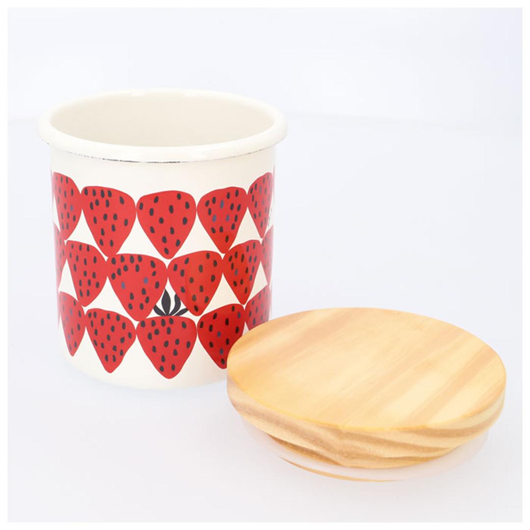| 商品説明 | ・ポップでキュートなデザインのホーローキャニスタ♪ ・汚れやニオイがつきにくいホーロー製。色移りせず、雑菌が繁殖しにくいのも嬉しいポイント。 ・コーヒー豆や紅茶のティーバッグ、お砂糖や塩などの調味料、お菓子などのストックにぴったり◎ ・天然木を使用したフタがナチュラル感を演出。どんなキッチンにも馴染みやすく、置いておくだけで可愛いインテリアに♪ ・新潟県燕市で1つ1つ丁寧に仕上げたキャニスター。(※下地は中国国内、絵付け、仕上げまでの完成工程を日本国内で行っております。) ・たっぷり入る容量750ml。小物入れとして使ってもOK! |