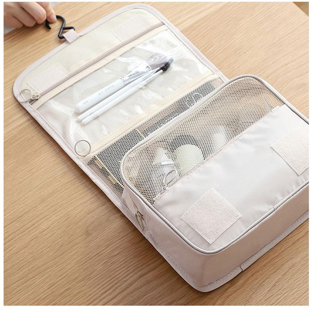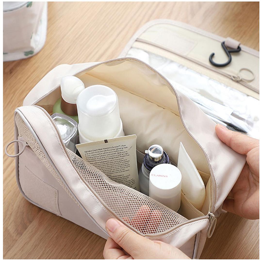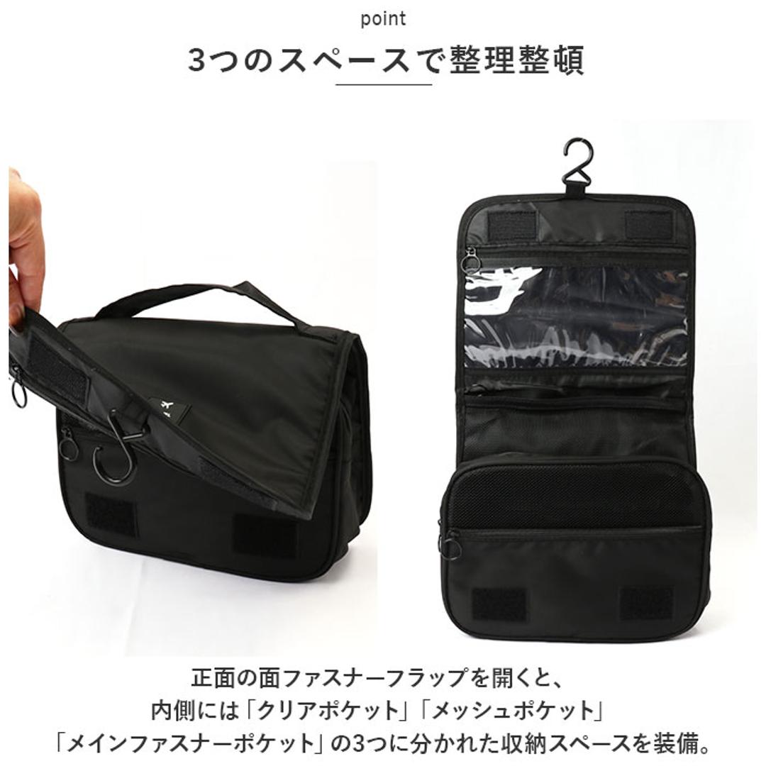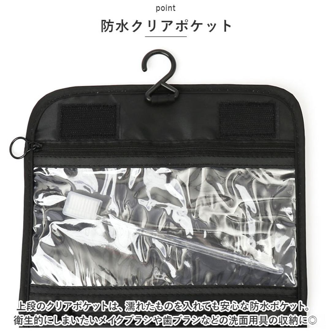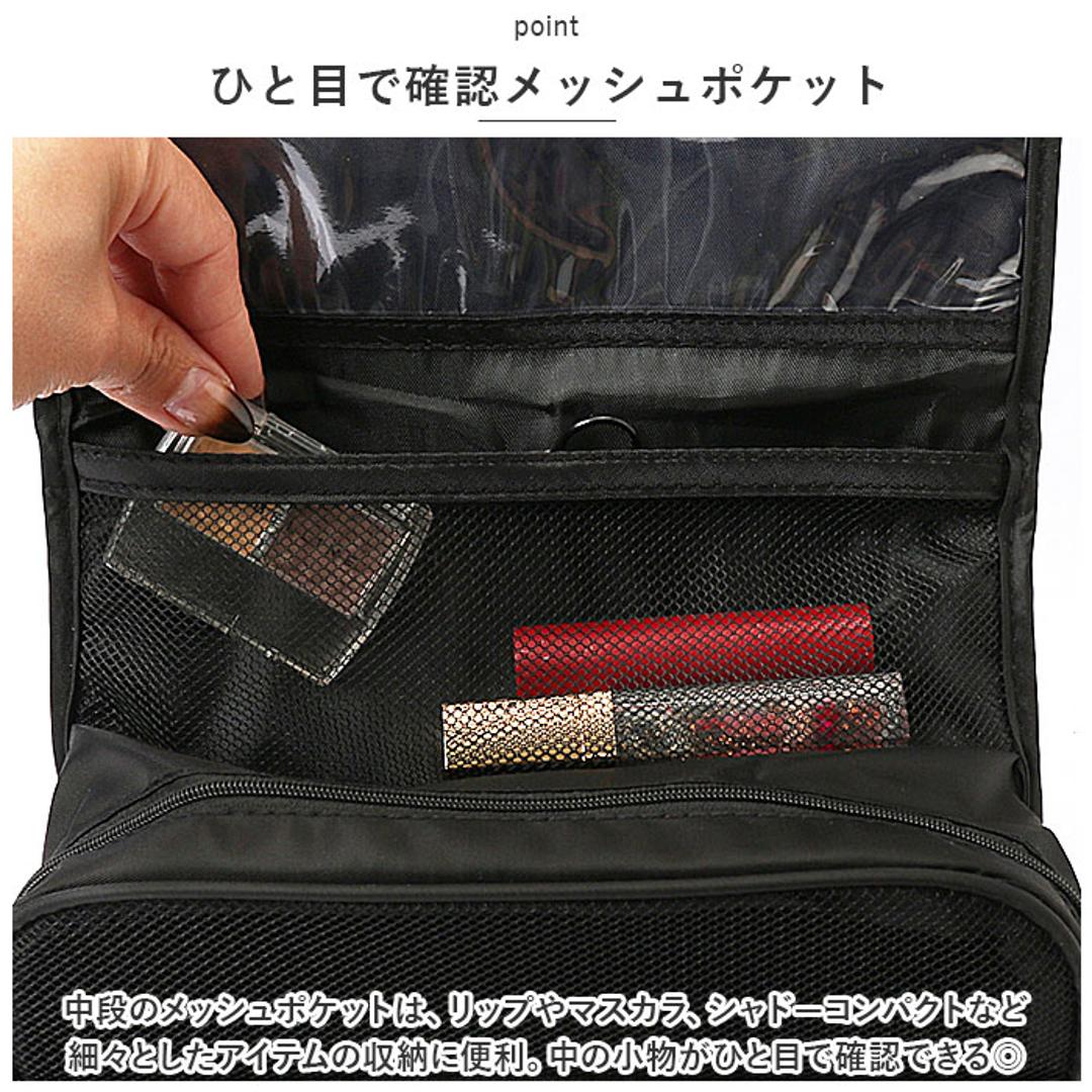 | 商品説明 | ・ドレッサーや洗面台に吊るして、コスメをサッと取り出し♪お出掛けに一緒に連れ出せる「トラベルポーチ」が新登場。 【吊り下げて壁掛け収納に】 ・コスメやメイク道具がすっきり収納できる、小ぶりに見えてたっぷり入るコスメポーチ。フックでホテルの洗面台に吊るせば、便利な壁掛け収納に変身! 【3つのスペースで整理整頓】 ・正面の面ファスナーフラップを開くと、内側には「クリアポケット」「メッシュポケット」「メインファスナーポケット」の3つに分かれた収納スペースを装備。 【防水クリアポケット】 ・上段のクリアポケットは、濡れたものを入れても安心な防水ポケット。衛生的にしまいたいメイクブラシや歯ブラシなどの洗面用具の収納に最適。 【ひと目で確認メッシュポケット】 ・中段のメッシュポケットは、リップやマスカラ、シャドーコンパクトなど細々としたアイテムの収納に便利。中の小物がひと目で確認できるのが嬉しいポイント。 【大容量メインポケット】 ・ファスナーで開くメインポケットにはミニ化粧水ボトルやフレグランスなどを立てたまま収納可能。仕切りやサイドポケット、ゴムベルトでボトルが固定できるから、ぐらつきや液漏れもしっかり防止。 【ミニポケットも充実】 ・メインポケット前面にファンデやチークのコンパクトが収納できるファスナーポケット、背面側にもフェイスパックやミニタオル用のオープンポケット付き。 【持ち運びもラクラク】 ・持ち手ハンドル付きなので、ドレッサーやバスルームまで、ポーチ単体でも持ち運びがラクちん。 【水滴は弾くはっ水加工生地】 ・ポーチの生地にははっ水加工が施されているので、洗面化粧台やバスルームなど、水回りで使用しても安心。 【使い方は自分次第】 ・コスメや洗面用具用のトラベルポーチとしてだけなく、スマホやモバイルバッテリー、イヤホンなどをまとめるガジェットポーチとしても大活躍。 |