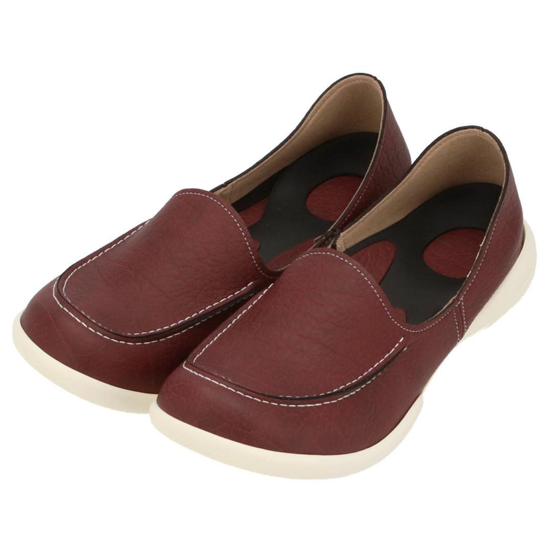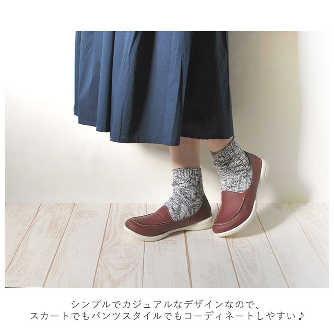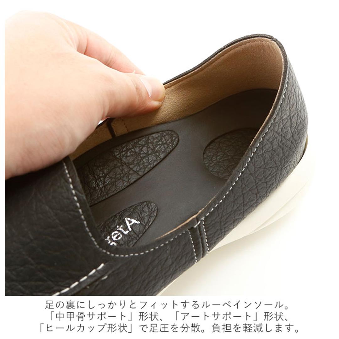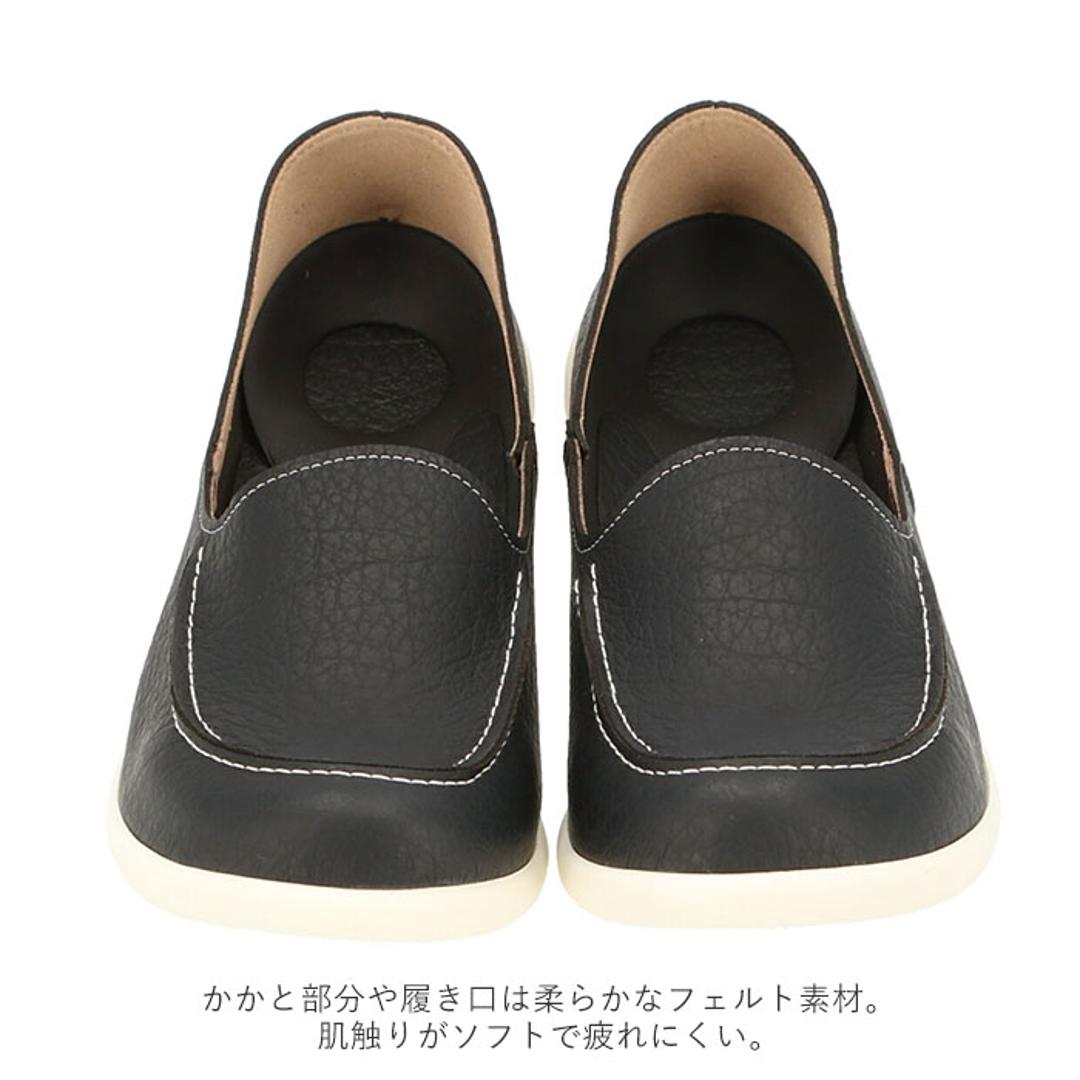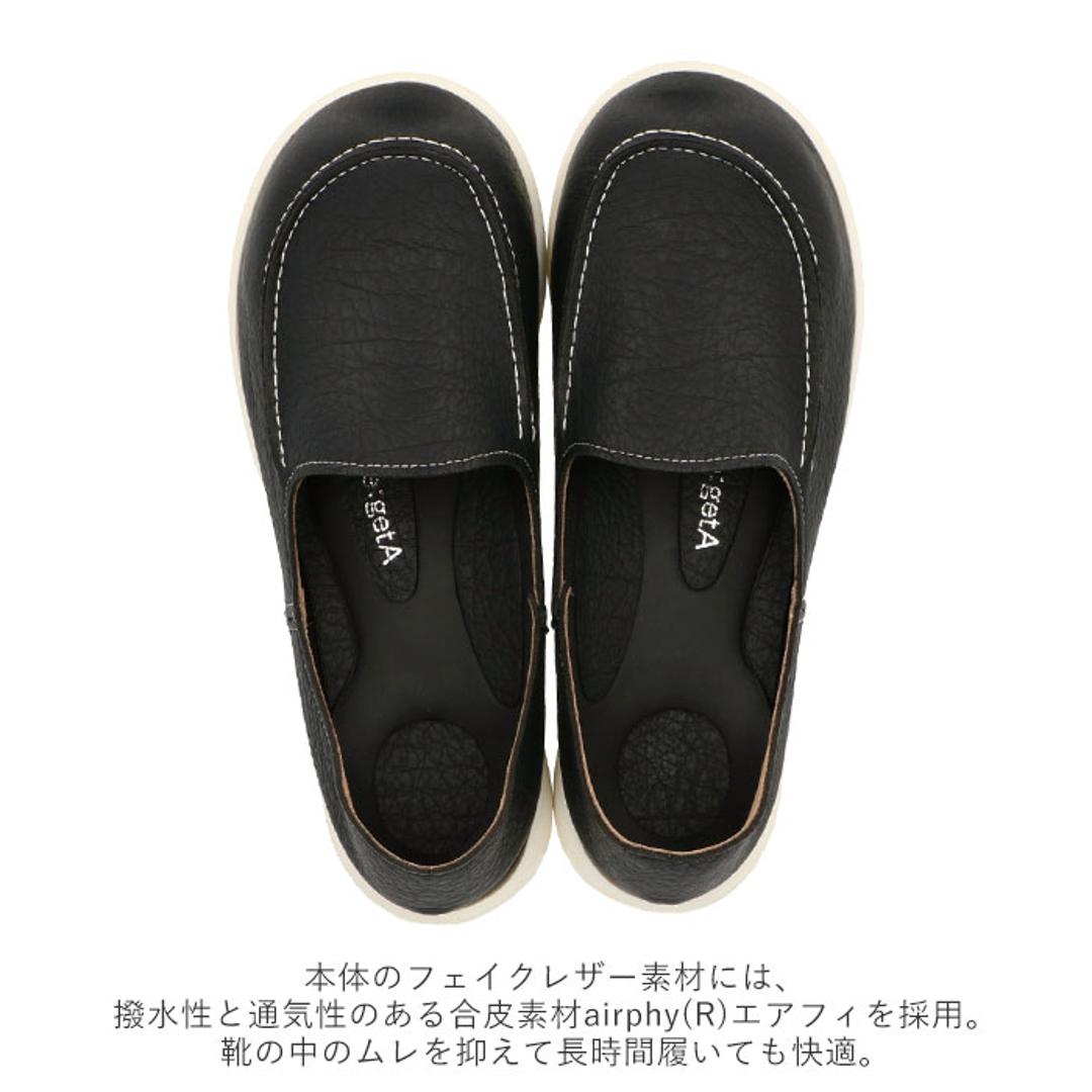 | 商品説明 | ・「下駄(Geta) をもう一度(Re:)」というコンセプトの元、2005年に大阪・生野区で生まれた、Re:getA(リゲッタ)。日本古来の機能的な履物である下駄を見直し、硬いアスファルトの上を歩く現代人の足にフィットするよう、人間工学に基づいたアイディアで再設計されて誕生したコンフォートシューズブランド。 ・軽くて柔らかな質感のフェイクレザー素材で、足元快適でスタイリッシュ!スリッポンみたいにサッと履けるRe:getA(リゲッタ)ドライビングローファーに、ポップなホワイトソールタイプが新登場! ・つま先が反りあがったローリングカットで、つま先に少し力を入れるだけでスイスイ進めて、かかとのラウンディングカットでかかとからしなやかに着地できる。Re:getA(リゲッタ)のアウトソールが、理想的な歩き方に導いてくれる♪ ・足の裏にしっかりとフィットするルーペインソールが歩きやすさの秘密!足裏を持ち上げ、横アーチのスプリング力をサポートする「中甲骨サポート」形状と、土踏まずの隙間を埋め、足裏にかかる負担を分散する「アートサポート」形状、さらに、サイドからかかとを支えてブレずに着地できる「ヒールカップ」形状で足圧を分散。足裏への負担を軽減! ・本体のフェイクレザー素材には、水を弾いて、通気性のある合皮素材airphy(R)エアフィを採用。靴の中のムレを抑えて長時間履いても快適。かかと部分や履き口は柔らかなフェルト素材で、肌触りがソフトで疲れにくい。 ・ソール裏側にはしっかりと溝が刻まれているので、雨の日でも滑りにくい。 ・落ち着いた色調のフェイクレザーに、真っ白なソールと白いステッチが映える、シンプルでカジュアルなデザイン。スカートでもパンツスタイルでも自在にコーディネートできる親しみやすさが魅力♪ ・片足(Lサイズ)で約200g!履いていることを忘れてしまいそうな軽さ。フラットなソールで疲れにくく、いつでも気軽に履けるのが嬉しい♪ |