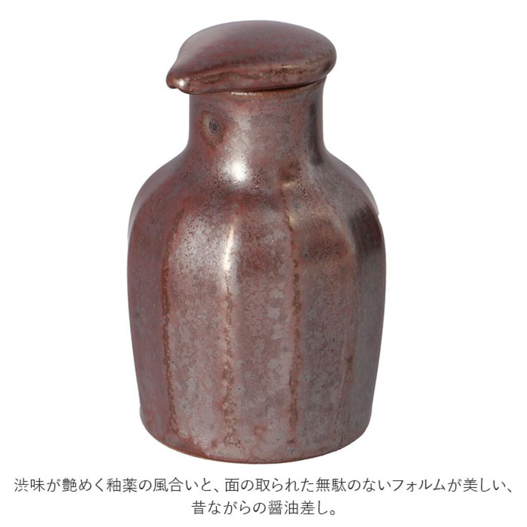 | 商品説明 | ・小さいけれど、食卓で大活躍!片手で持ちやすく、あとびきしない「楽らく醤油差し」 ・渋味が艶めく釉薬の風合いと、面の取られた無駄のないフォルムが美しい、昔ながらの醤油差し。 ・フタを挿して、軽く回して閉めるネジ式だから、片手で持ってもフタが落ちず、傾けるだけでスッとお醤油が差せるのがポイント。 ・注ぎ口のキレが抜群で、受け皿要らず!醤油があとびきせずに、テーブルも汚さないので、後片付けだって楽ちん。 ・黒釉、白釉、柿釉など、釉薬の仕上げごとに異なる陶器ならではの素材感が楽しめるのも魅力のひとつ。 ・お世話になった方へプチギフトにぴったり。シックな化粧箱入り。 |