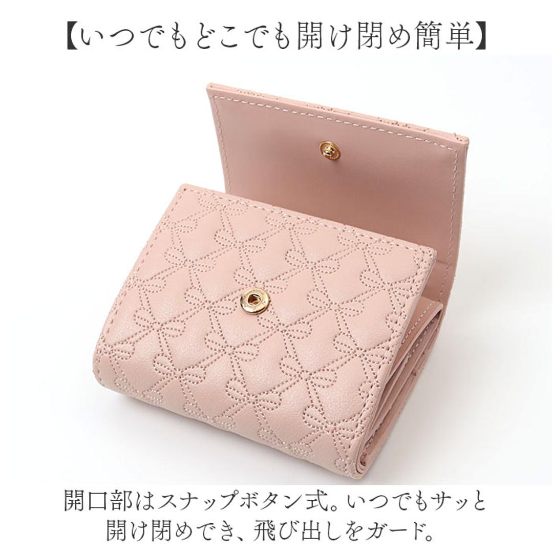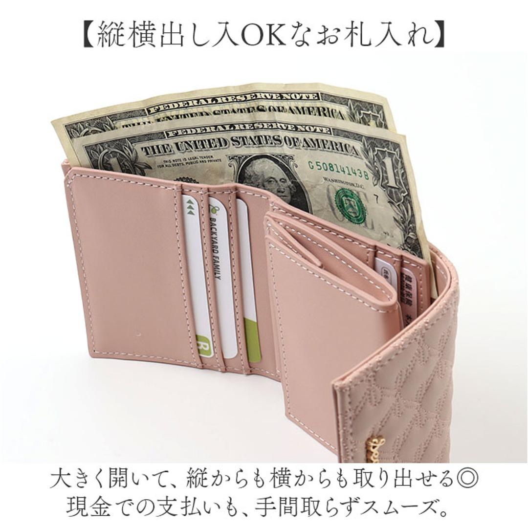 | 商品説明 | 【すっきりまとまる三つ折り仕様】 ・コンパクトながら現金やカードが1つに♪「ミルクティーボックスコイン三つ折財布」。 【トレンドライクなリボンデザイン】 ・リボンの総柄刺繍がポイント♪ワントーンカラーで統一した、大人可愛い仕上がり。 【スマートに持ち運べて使い勝手抜群】 ・片手に収まり、小さめのバッグにも収納しやすいサイズ感。通勤もお出かけも、デイリーに活躍。 【いつでもどこでも開け閉め簡単】 ・開口部はスナップボタン式。いつでもサッと開け閉めでき、飛び出しをガード。 【ガバっと開くボックスコインケース】 ・スナップボタン式の小銭入れ。中身を確認しやすく、出し入れもしやすいボックス形状。 【縦横出し入OKなお札入れ】 ・大きく開いて、縦からも横からも取り出せる◎現金での支払いも、手間取らずスムーズ。 【カードを仕分けしやすい7ポケット】 ・増えがちなカード類もすっきりIN。カードポケットを7個装備し、見た目以上の収納力! 【本革のようなお手入れの手間いらず】 ・柔らかな合皮素材を使用しており、汚れなどは拭き取るだけ。手軽に使えるのが嬉しい◎ 【お気に入りを選べるカラー】 ・シックなカラーや、柔らかな風合いのカラー。フラップの立体ゴールドロゴがアクセント☆ 【ポケット仕様】 ・内側:スナップボタン式小銭入れ×1、お札入れ×1、カードポケット×7 |