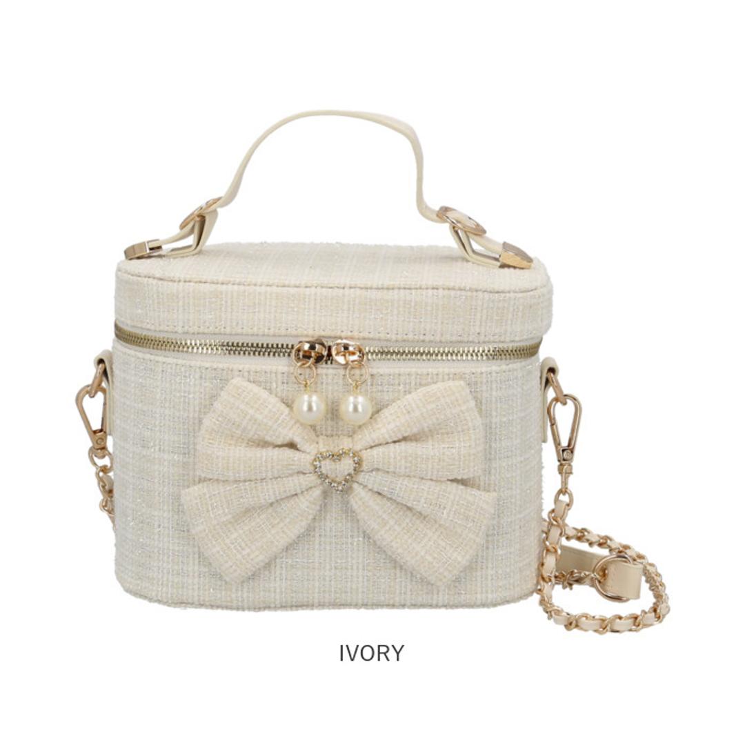 | 商品説明 | 【コーデに可愛いアクセントをプラス】 ・おしゃれに持てる、バニティポーチのようなデザイン!「アールグレイ3WAYBAG」。 【可愛いをたっぷり詰め込んだバッグ】 ・温かみのあるツイード素材仕上げ。大きなリボンの中心には、ハートのビジューをON♪ 【お好みに合わせてスタイルチェンジ】 ・ショルダーの留め方次第で、2通りの使い方♪ショルダーを取り外して手持ちもできる3WAY! (※)ショルダーの留め方を変えることで、長さが変わります。 【見やすくぐるっと大きくオープン】 ・左右どちらからも開くダブルファスナー式。取り出しやすく、閉じれば中身が飛び出す心配なし。 【マストアイテムがひとまとめ】 ・ミニ財布やコンパクトなコスメ、スマホなどをIN。荷物を入れていない状態でも自立◎ 【サクッと取り出せて迷子知らず】 ・内側に2つのポケットを配置。細々した物も、バッグの中で探す手間が不要。 【底面の擦れを軽減して長持ち】 ・底面四隅には、傷や汚れが付きにくい底鋲を装備。直置きも安心。 【ガーリーファッション好きに最適】 ・ファスナー引き手に、イミテーションパール付き♪ときめきポイント溢れるデザインが魅力。 【ポケット仕様】 ・内側:オープンポケット×2 |