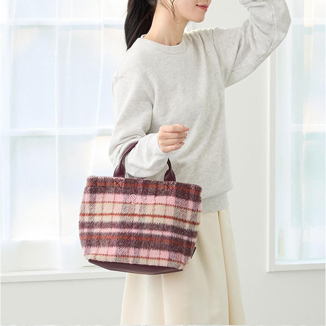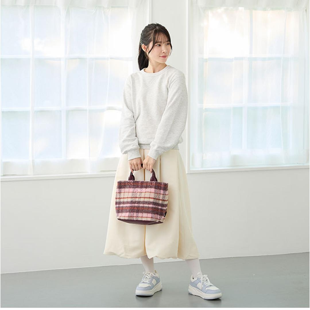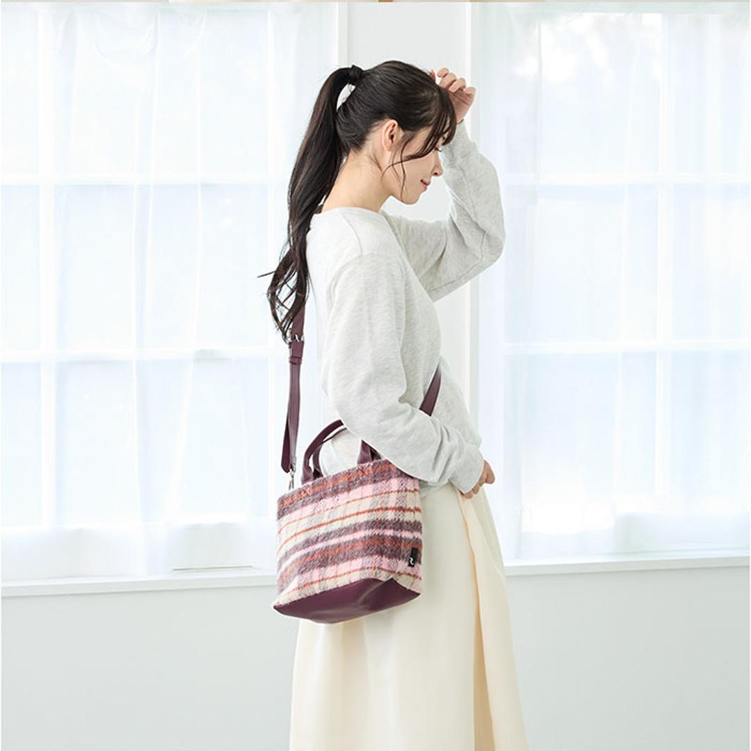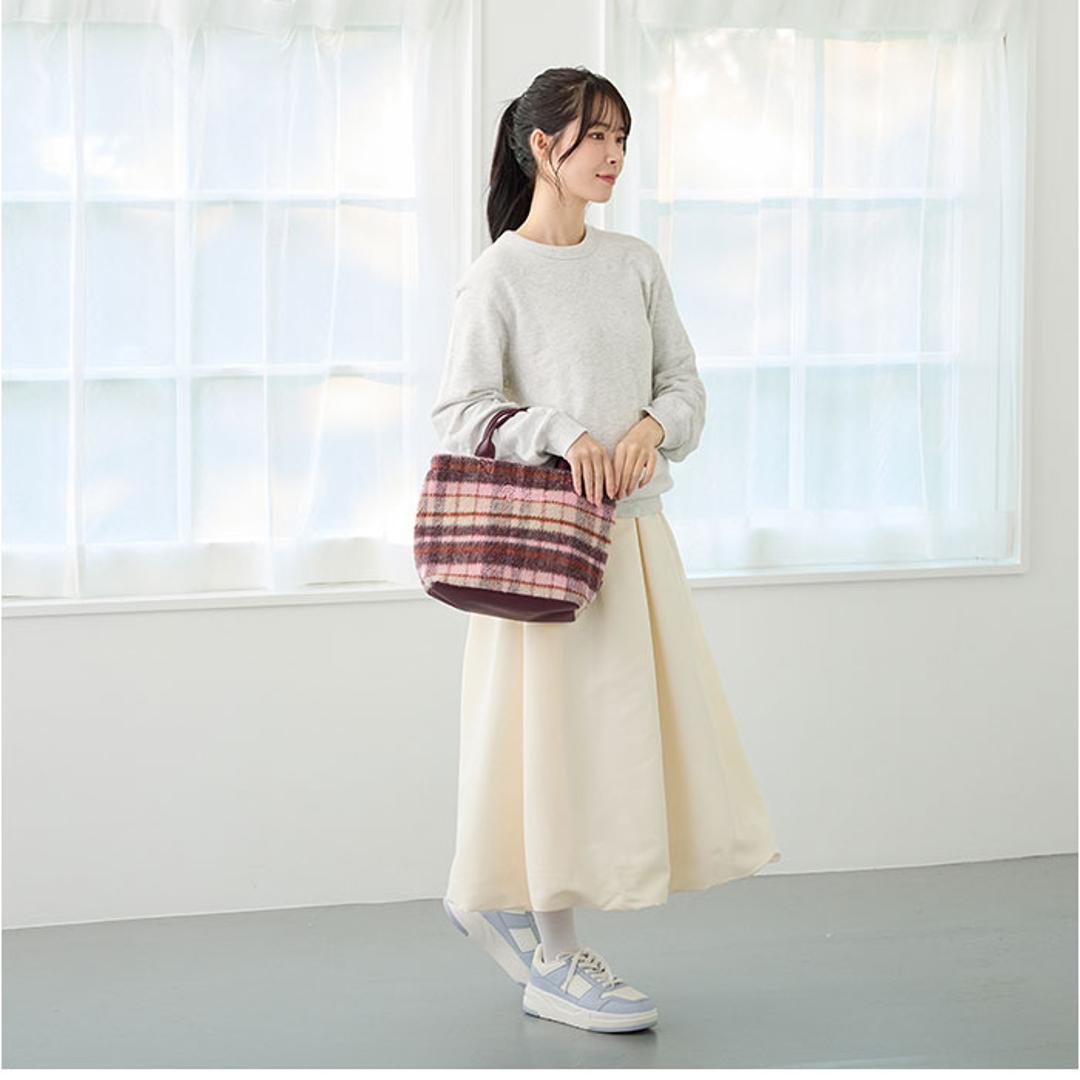 商品説明・持ち手と底面には合皮を合わせて、カジュアルな中にもきちんと感をプラス。