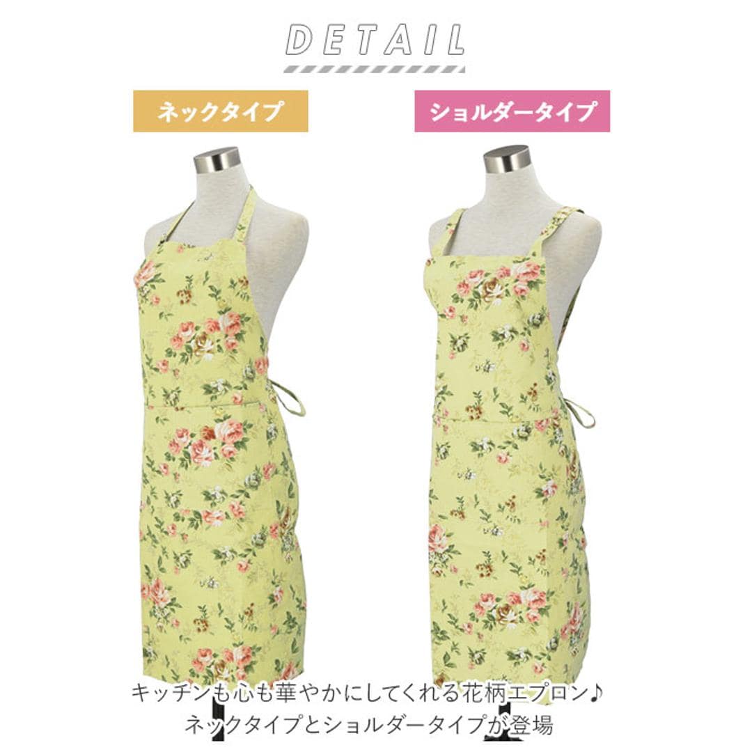 | 商品説明 | ・キッチンも心も華やかにしてくれる花柄エプロン♪ネックタイプとショルダータイプが登場。 ・シワになりにくく普段使いしやすい、コットンとポリエステルの混紡素材を使用。 ・腰紐は前でも後ろでも結ぶことができるから、お好みや気分に合わせて変えてもOK♪ ・フロントにはハンカチやレシピを書き留めたノートを入れておける、大きめサイズのポケット×2付き。 ・お好みに合わせて選べる2タイプをご用意♪ ・首紐の長さ調整が可能でサッと着用できるネックタイプと、肩や首への負担が少なく、肩紐をバックボタンで2段階に調整できるショルダータイプ。 ・家事を頑張っている方への贈り物にもおすすめ。 |