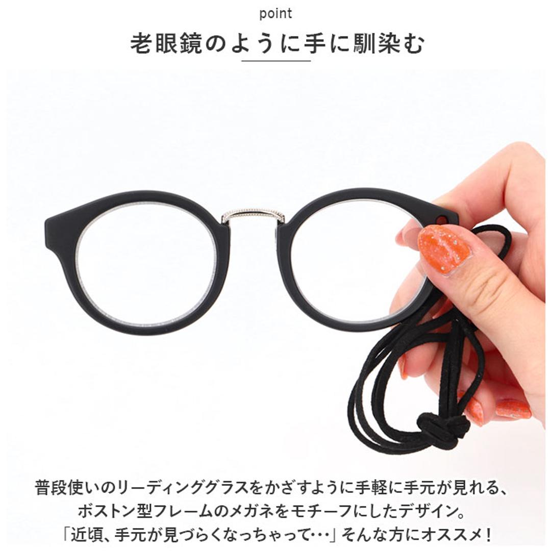 ・普段使いのリーディンググラスをかざすように手軽に手元が見れる、ボストン型フレームのメガネをモチーフにしたデザイン。「近頃、手元が見づらくなっちゃって・・・」そんな方にオススメ!