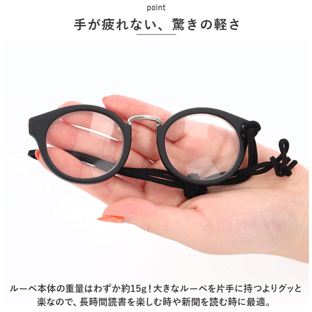 商品説明・スマホや読書など、必要なときにサッと出して使える!ペンダントみたいにオシャレな「ルーペメガネ」が新登場。