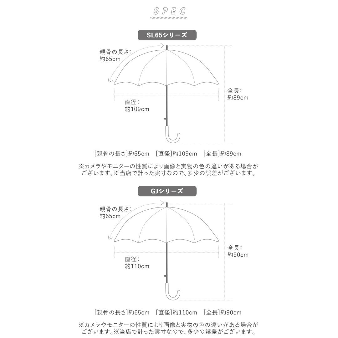 | サイズ | ・SL65シリーズ(ツートンカラータイプ) [親骨の長さ]約65cm(拡張時親骨サイズ:約77.5cm) [直径]約109cm/[全長]約89cm ・GJシリーズ(単色カラータイプ) [親骨の長さ]約65cm(拡張時親骨サイズ:約77.5cm) [直径]約110cm/[全長]約90cm ※サイズは当店計測の実寸サイズです。実際の商品ならびにメーカー表記サイズとは多少の誤差が生じる場合がございます。あらかじめご了承ください |