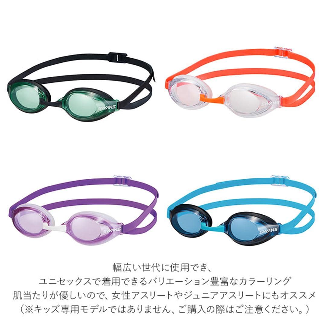 | 商品説明 | ・肌にやさしいシリコーンクッションでストレスフリー!数多くのトップアスリートが支持する「SWANS」から、「AQUALIGHTNING(アクアライトニング)レーシング・シリコンクッションモデル」が新登場。 ・肌に直接触れるクッション部分に柔らかなシリコーン素材を使用。顔の形状に沿うように立体成型し、フィット感がUP! ・さっと拭いてくもりを防ぐ、新しいくもり止め技術「PREMIUM ANTI-FOG re:non」(プレミアムアンチフォグ・リノン)を採用。泳ぐことに集中するための、よりクリアな視界を実現。 ・従来のくもり止めコーティングに比べ、使用→乾燥→使用の繰り返しにおいてもコーティングの耐久性が向上。くもり止め効果が長持ちし、ゴーグルを長く愛用できるのも嬉しいポイント。 ・有害な紫外線をカットし、屋外での水泳競技でも安心。(※紫外線透過率:0.1%以下。レンズの明るさはカラーにより、「明るめ」、「普通」の2種類があります。) ・ノーズパーツ(鼻ベルト)は、ワンタッチで取り替えができる「SS・S・M・L・LL」の5サイズ。 ・幅広い世代に使用でき、ユニセックスで着用できるバリエーション豊富なカラーリング。肌当たりが優しいので、女性アスリートやジュニアアスリートにもオススメ。(※キッズ専用モデルではありません、ご購入の際はご注意ください。) |