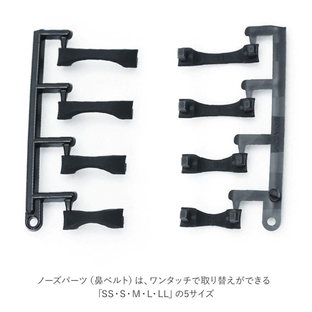 | 素材 | [アイカップ]ポリカーボネート [ベルトアジャスター]ポリカーボネート [鼻ベルト]エラストマー [ベルト]エラストマー [クッション]シリコン |