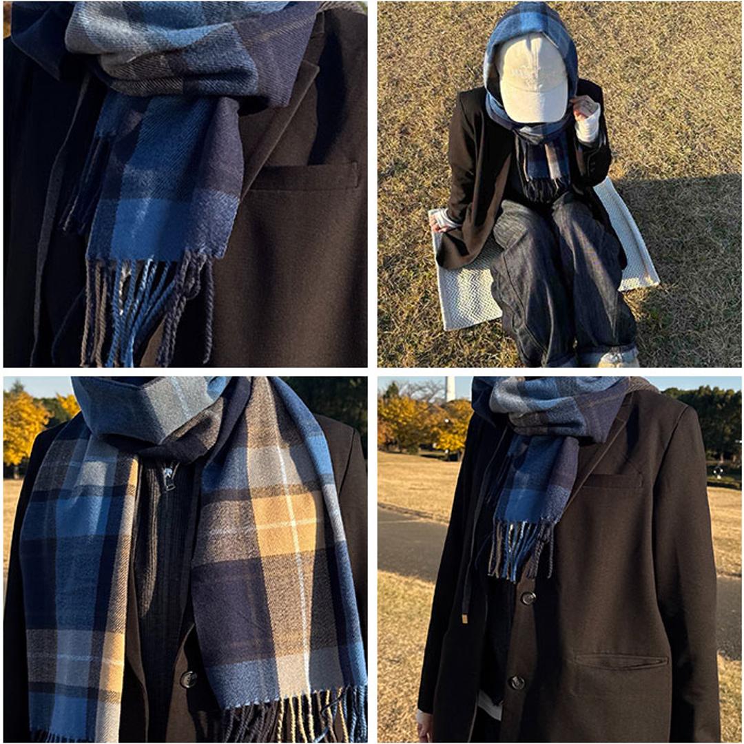 商品説明・ふんわり柔らかな肌触りが魅力のカシミヤタッチチェックマフラー。