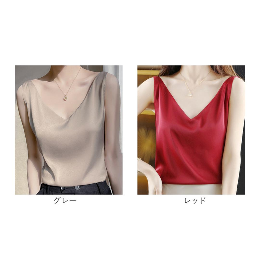 商品説明・エレガントで洗練されたデザインのシルキータッチのキャミタンク。