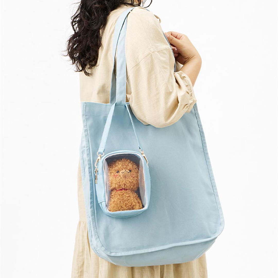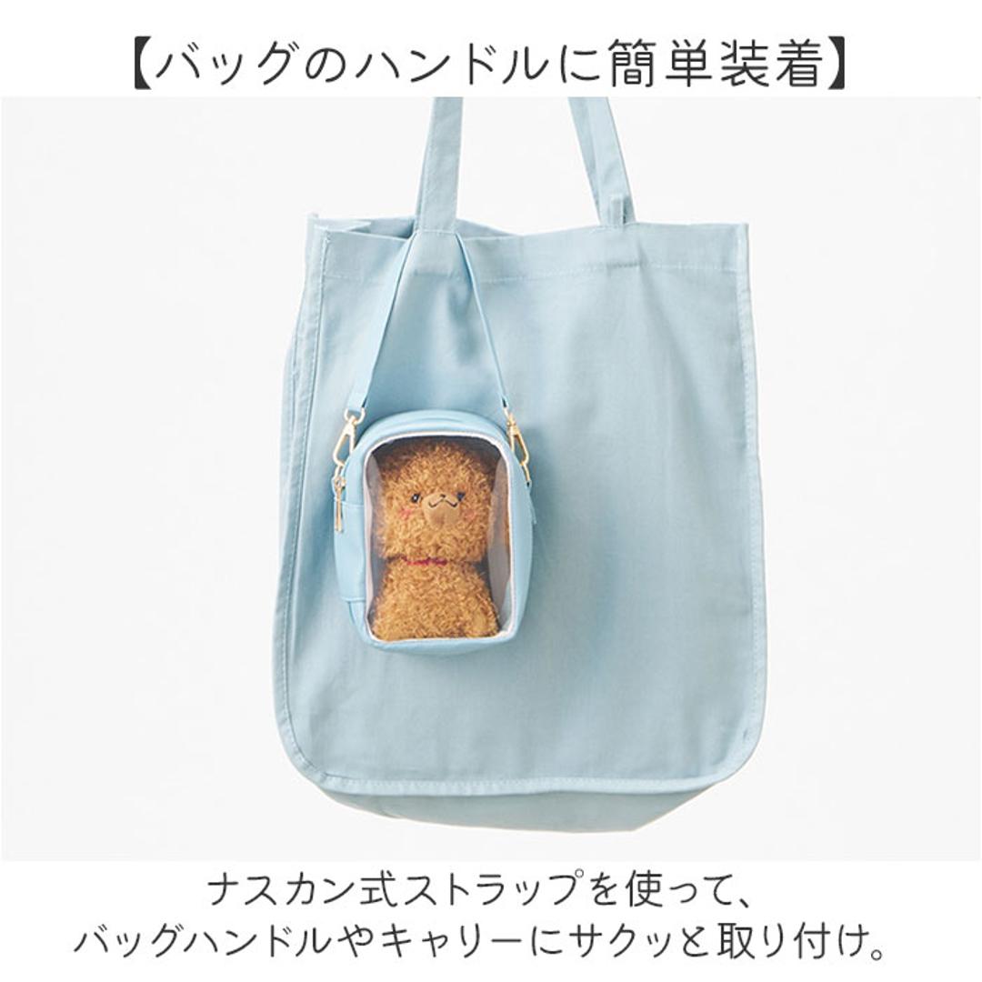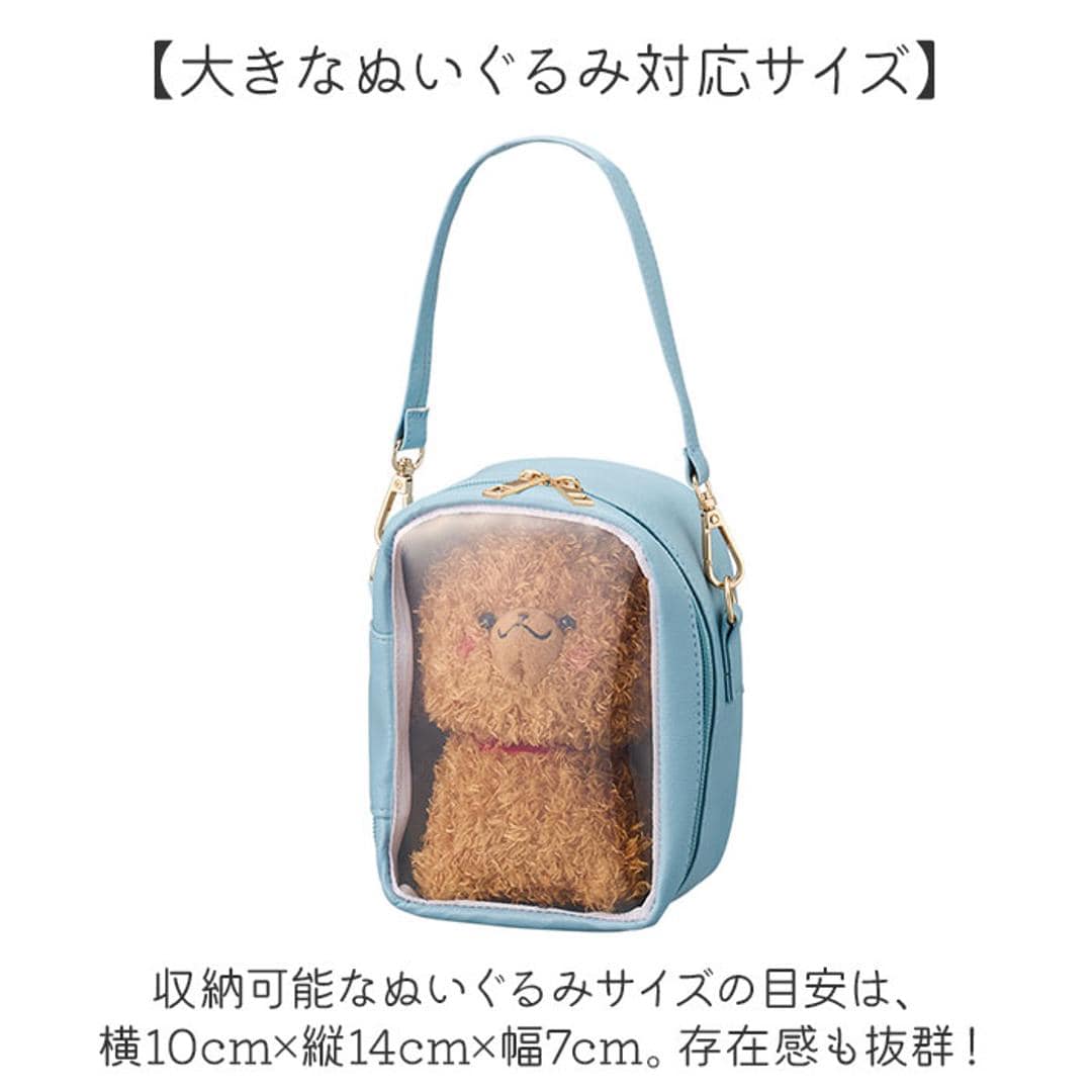 ・推しのぬいぐるみを見せてお出かけできる、前面クリア窓。お気に入りといつも一緒☆