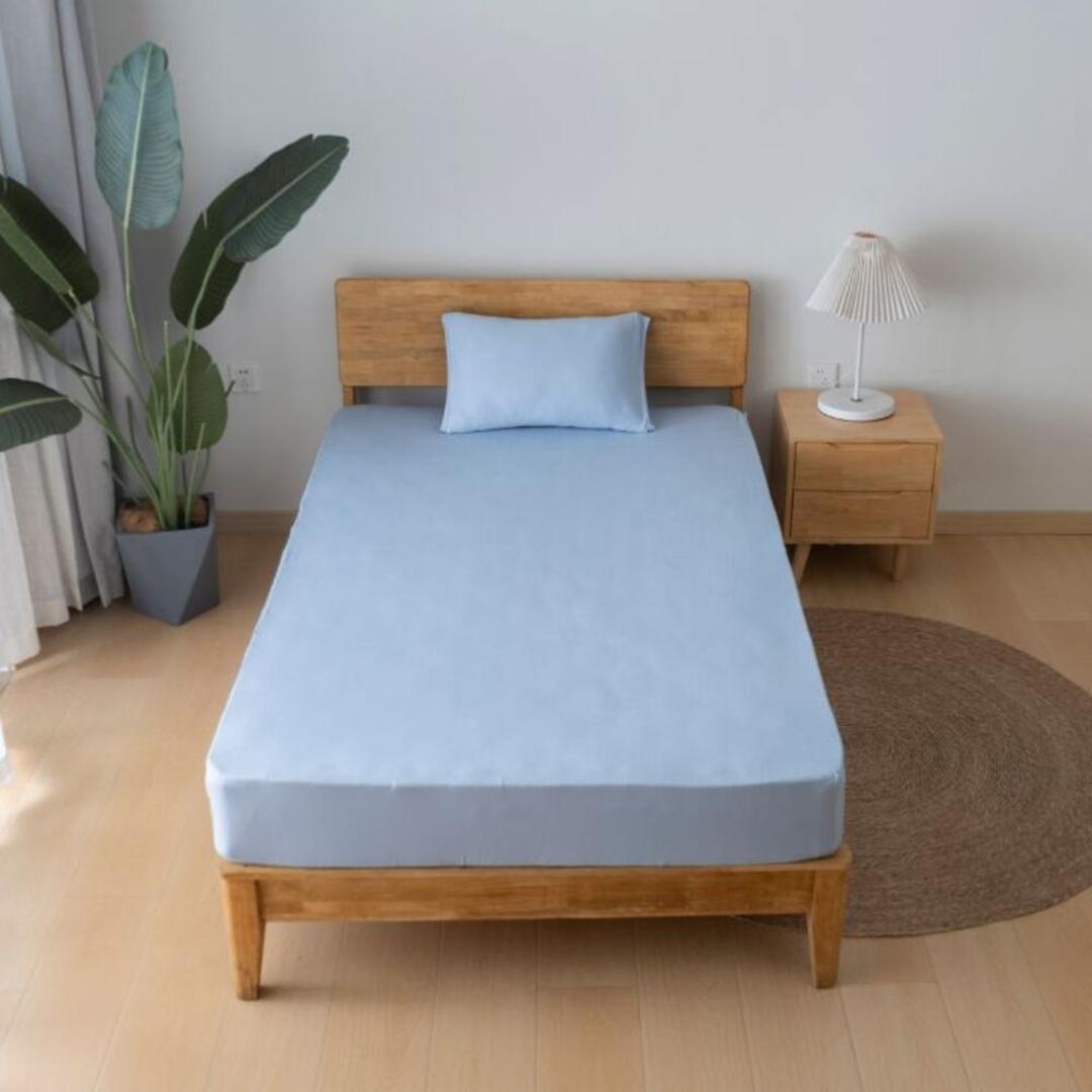 ・薄手で軽いのに、しっかり高密度生地で織り上げたボックスシーツは、アレルギーや健康を害する異物の侵入を防ぐ。