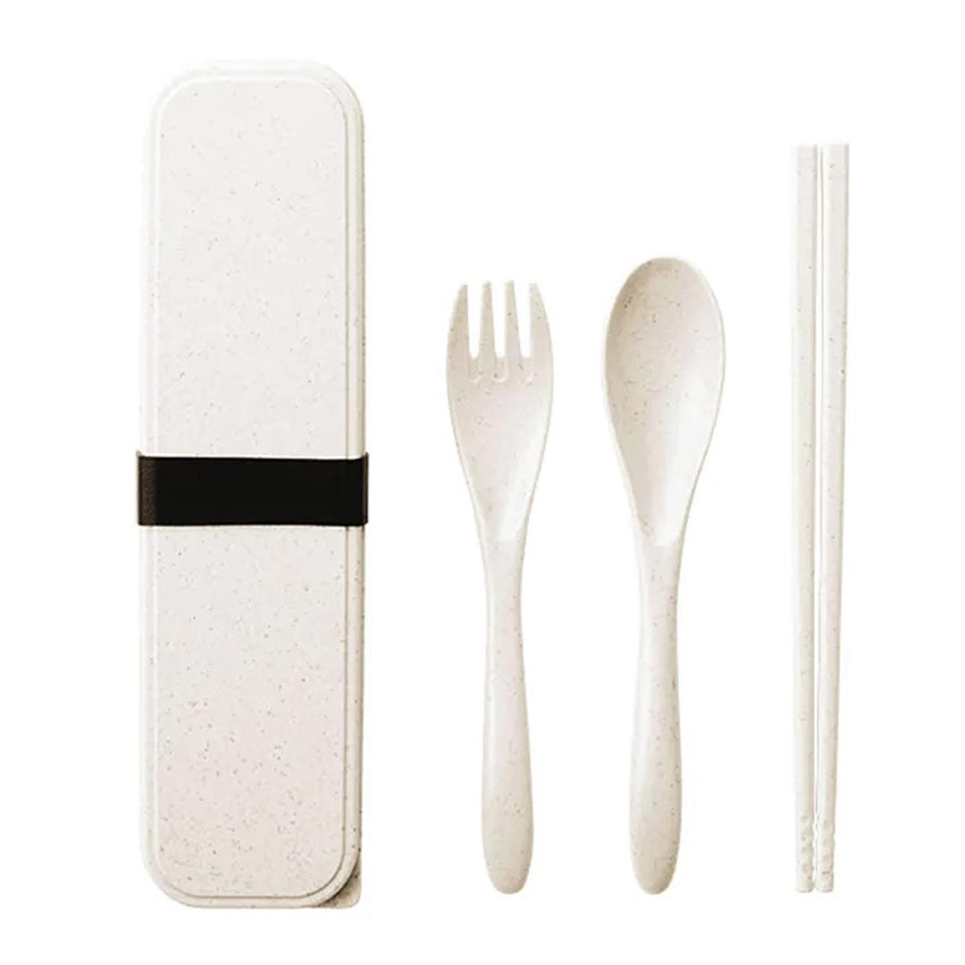 ・スプーン、フォーク、お箸のセット。ケースに入れて付属のシリコンバンドで留めればケースのフタが開く心配がなく、コンパクトに持ち運ぶことができる◎
