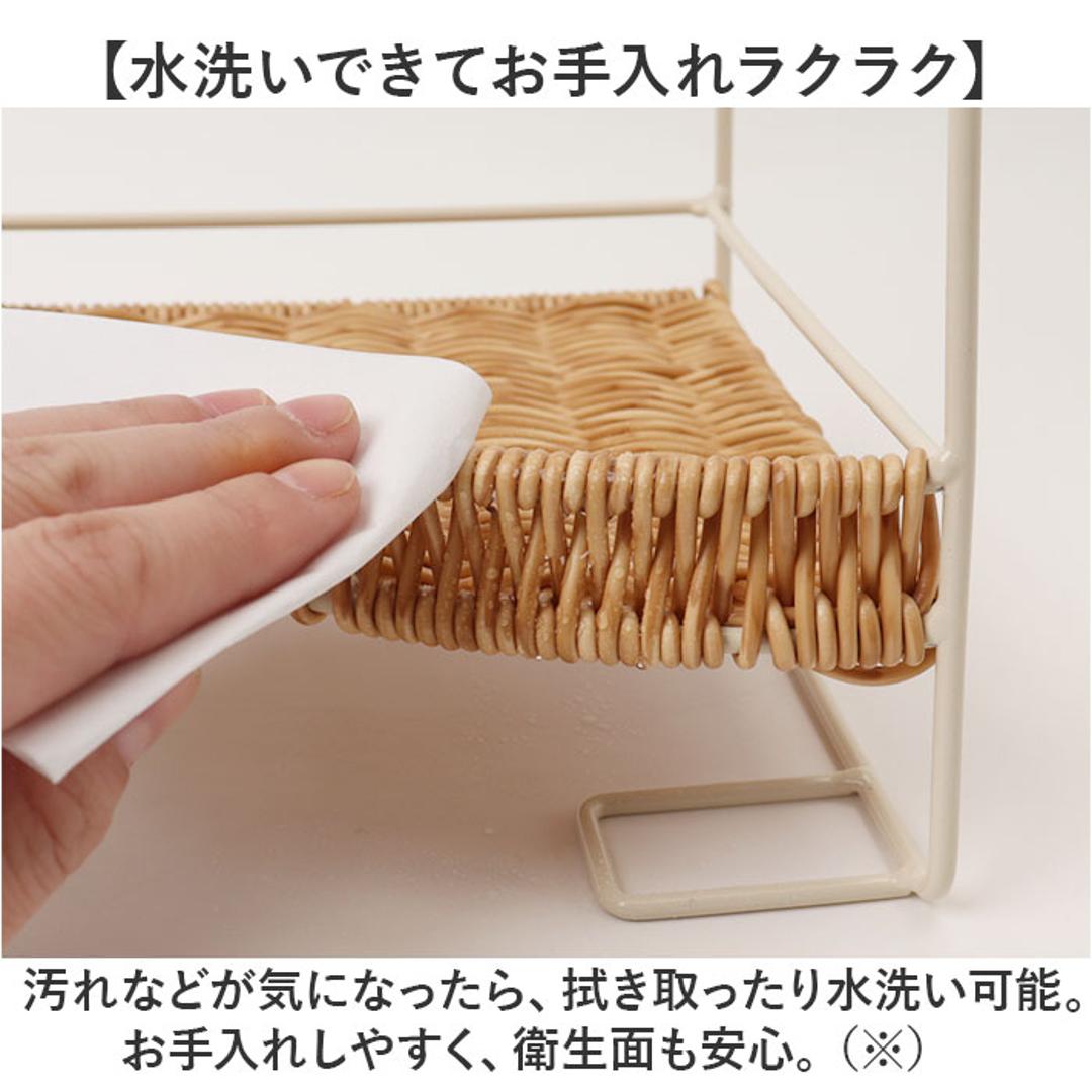 | 商品説明 | 【見た目にも使い勝手にもこだわりを】 ・温かみのある風合いに仕上げ、すっきり整頓◎「UTILE ユティル コーナーラック」。 【天然素材のようなナチュラル感】 ・ポリプロピレンとポリエチレンを使って手編み。生活感が出にくく置いておくだけでサマになる! 【型崩れしにくく丈夫なつくり】 ・一部にアイアン素材を使用し、しっかりとしたつくりに。 【コーナースペースを有効活用】 ・上段と下段でサイズが異なる2段設計。用途に合わせて使い分けできるのもポイント! 【水洗いできてお手入れラクラク】 ・汚れなどが気になったら、拭き取ったり水洗い可能。お手入れしやすく、衛生面も安心。 (※)濡れた状態で放置しないでください。 【どんな空間にも素敵にマッチ】 ・飽きが来ず、空間に馴染んで長く愛用できる♪お気に入りのアイテムで、お家時間をより豊かに。 |