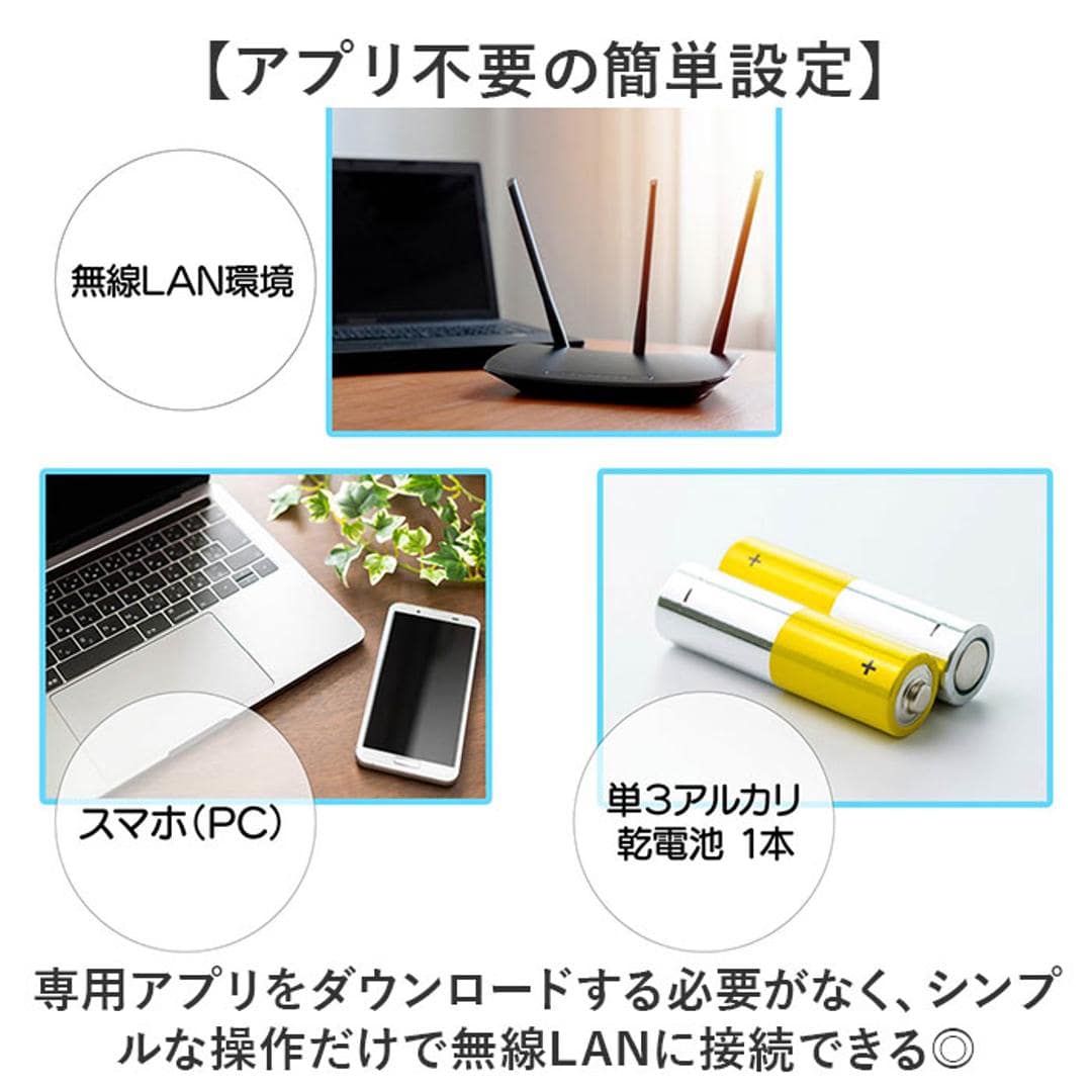 | 注意点 | [付属品]保証書 ※乾電池は別売りです。 ※お取り扱いの際は、商品やパッケージなどに記載されている品質表示、アテンションタグ、ご使用上の注意事項などを必ずご確認下さい。 ※本来の目的以外にはご使用にならないで下さい。 ※カメラやモニターの性質により、画像と実物の色の違いがある場合がございますのでご理解願います。 |