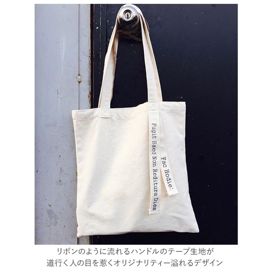| 商品説明 | ・シンプルさの中にも個性が光る☆ナチュラルなキャンバストートバッグ。 ・リボンのように流れるハンドルのテープ生地が、道行く人の目を惹くオリジナリティー溢れるデザイン。 ・メイン収納の開口部は、小物の出し入れがスムーズにできるマグネットボタン式。 ・メインスペースはA4サイズに対応し、通勤や通学用に便利な使い勝手のよいサイズ感。 ・内側には二つ折り財布やパスケースの収納に適したファスナーポケットを一つ配置。 ・カチッとしたスクエア型に、マチのないスリムなフォルムで、スタイルを崩さずに持てるのが嬉しいポイント。 ・持ち手ハンドルは肩掛けにしやすい程よい長さで、両手がフリーになって持ち運びもスマートに。 ・リボンに描かれた「Fugit Haec Non Reditura Dies」(今日という日は二度とやってこない・・・という意味)のロゴがデザインのワンポイント。 |