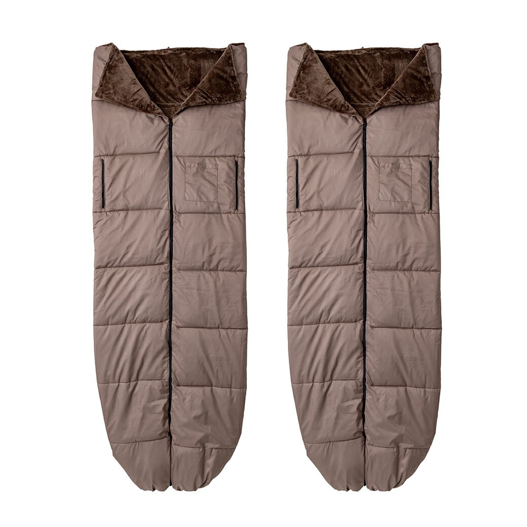 ●色/ブラウン ●サイズ(1枚)/約150×210cm、寝袋時:約75×210cm、収納時:約22×55cm ●重さ(1枚)/約1.44kg ●素材/表地:ポリエステル100%(撥水加工)、中身:ポリエステル100%保温綿・ポリプロピレン100%アルミ蒸着シート、裏地:ポリエステル100%(フリース生地) ●備考/丸洗いOK(ネット使用) ●製造国/中国製