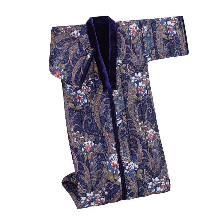 柔らかな肌触りの毛布を裏地から衿側まで使用したかいまき布団。全体を優しく包み込み、夜の冷え込みからしっかりと守ります。遠赤わたをはさんだ3層構造により、しっかりとした保温性を発揮。熱の逃げやすい肩口からつま先までしっかりガードしますので、寒さでよく眠れない方や寝ぞうが悪い方にもおすすめです。また、足ポケットのあるデザインで、足先の冷えも防ぎます!高級感のあるペイズリー調花柄は、インテリアとしても映えるデザイン。寝室に華やかさを添えてくれます。