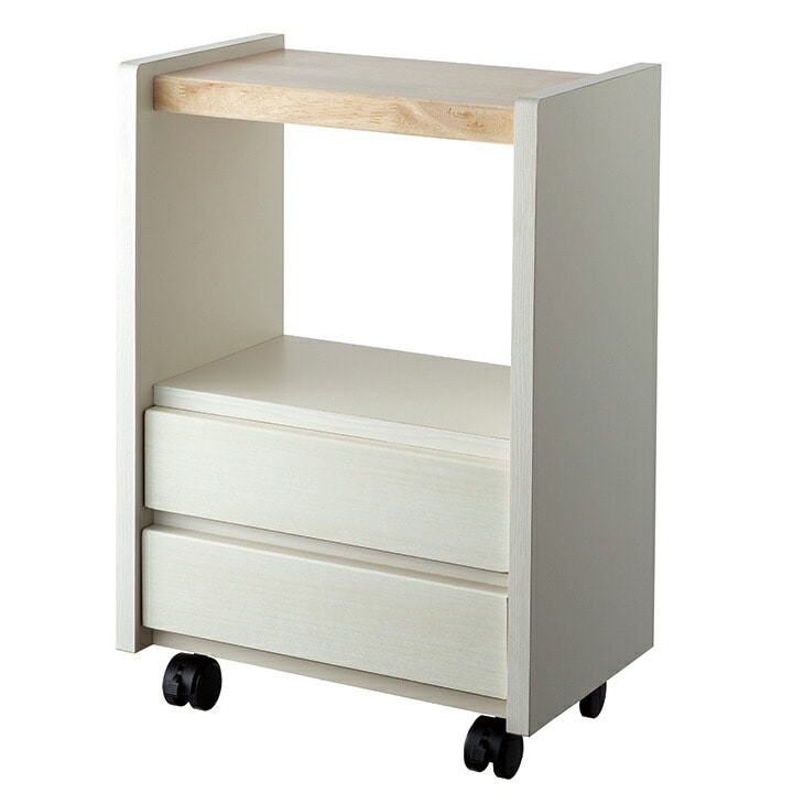 ●色/ダークブラウンウッド、ホワイト ●サイズ/約幅39×奥行き24×高さ55cm(キャスター含む)、引き出し内寸:約幅32×奥行き20×高さ6.5cm、オープンスペース内寸:約幅34.5×奥行き21.5×高さ23cm ●素材/本体:プリント化粧繊維板、桐、天然木(ラバーウッド) ●備考/一部組立式(キャスターのみ取り付け)、キャスター ストッパー付き2個、ストッパーなし2個 ●製造国/日本製