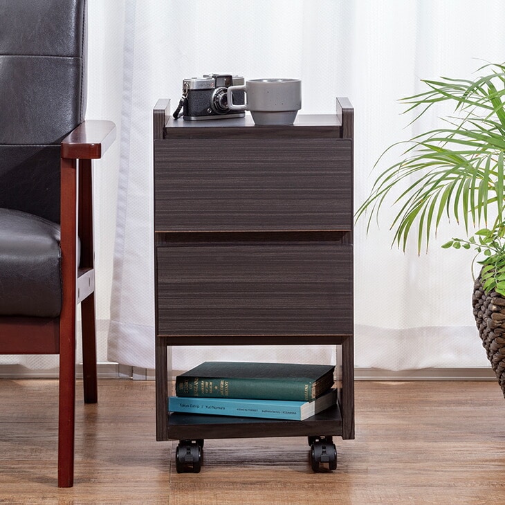 移動に便利なキャスター付き。 引き出しの下にはオープンスペースがありスマホなどちょっとした物を置く場所に便利。 一人暮らし、リビング、子供部屋、寝室等どんな場所でも大活躍。 シンプルなスタイルで実用性があります。
