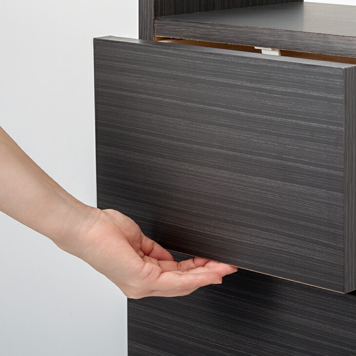 引き出しの下にはオープンスペースがありスマホなどちょっとした物を置く場所に便利。