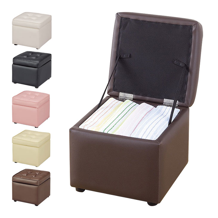 ●色/アイボリー・ブラック・ピンク・ベージュ・ブラウン ●サイズ/約幅40×奥行40×高さ37cm、収納部内寸:約32×32×深さ22cm ●重さ/約4.5kg ●素材/本体:天然木、貼り地:合成皮革、中材:ウレタンフォーム ●製造国/中国製