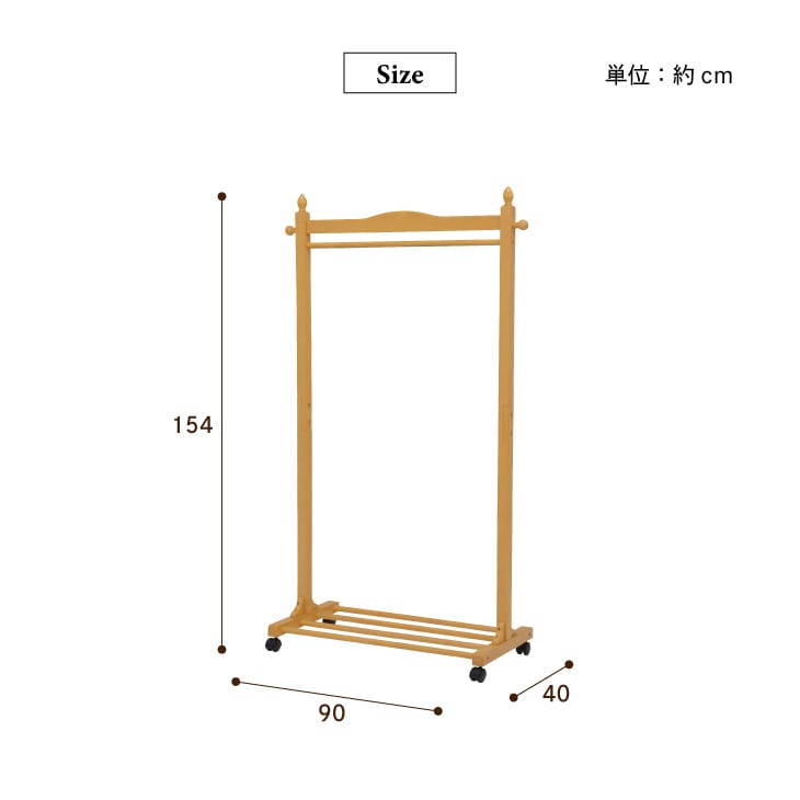 ●カラー/ブラウン、ナチュラル、ウォッシュホワイト ●サイズ/約幅90×奥行40×高さ154cm ●重さ/約5.5kg ●耐荷重量/約5kg ●素材/フレーム:ラバーウッド ●仕様/塗装:ラッカー塗装 ●備考/お客様組立式 ●製造国/ベトナム製