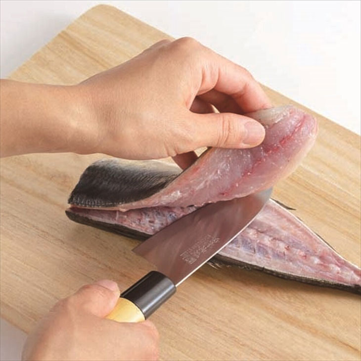 刺身包丁:切り身などを薄く切るために 菜切包丁:野菜などのカットに 万能包丁:肉や野菜や魚など色々な食材に ペティナイフ:果物の皮むきや細かいカットに 小出刃包丁:小魚などをおろすのに