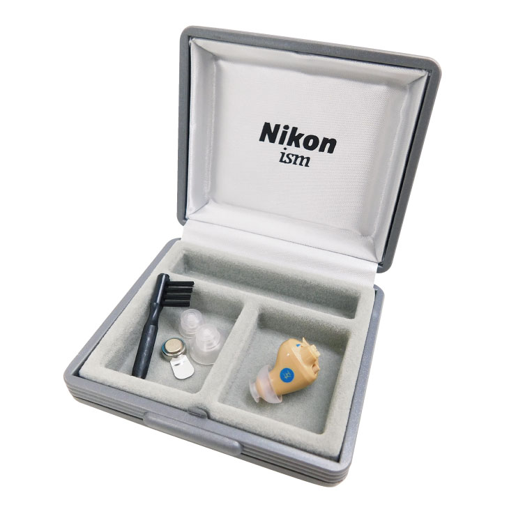信頼と実績のニコン・エシロール製のデジタル耳あな型補聴器。日本語の低音域の周波数帯を強調し、しっかりと聞き取る事ができます。ハウリングキャンセラー機能搭載で、不快なピーピー音をデジタルで抑制します。らくらく電池交換。電池は裏表どちらに入れても作動します。