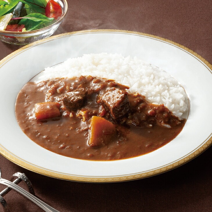 国産の牛肉・玉ねぎ・じゃがいもを使い、野菜や果実がとけこんだまろやかなソースにオリジナルスパイスで香り高く仕上げました。
