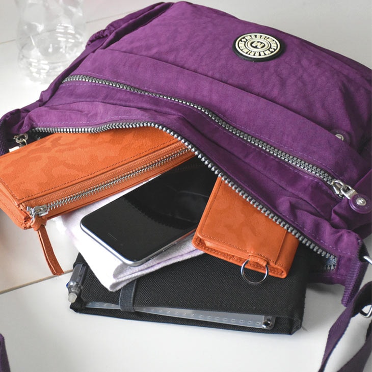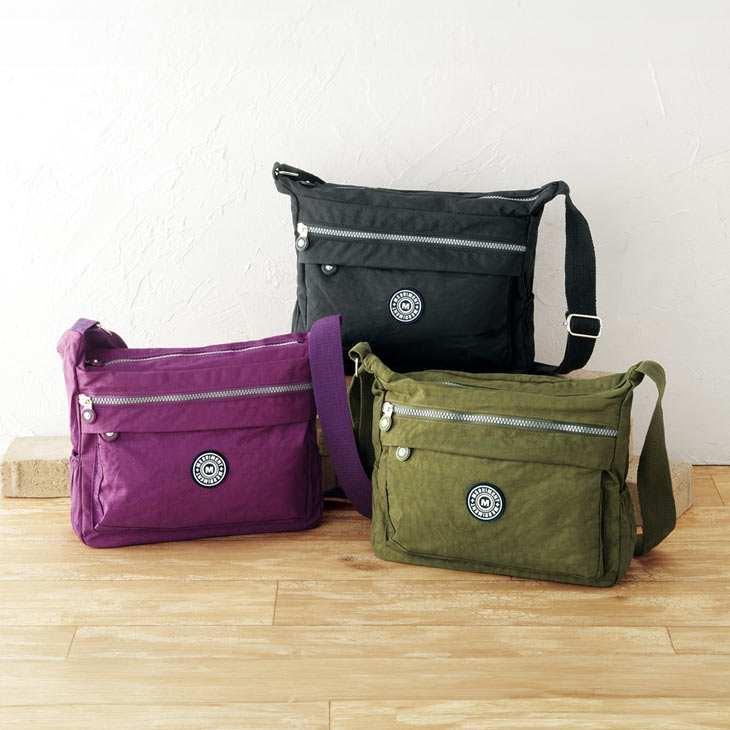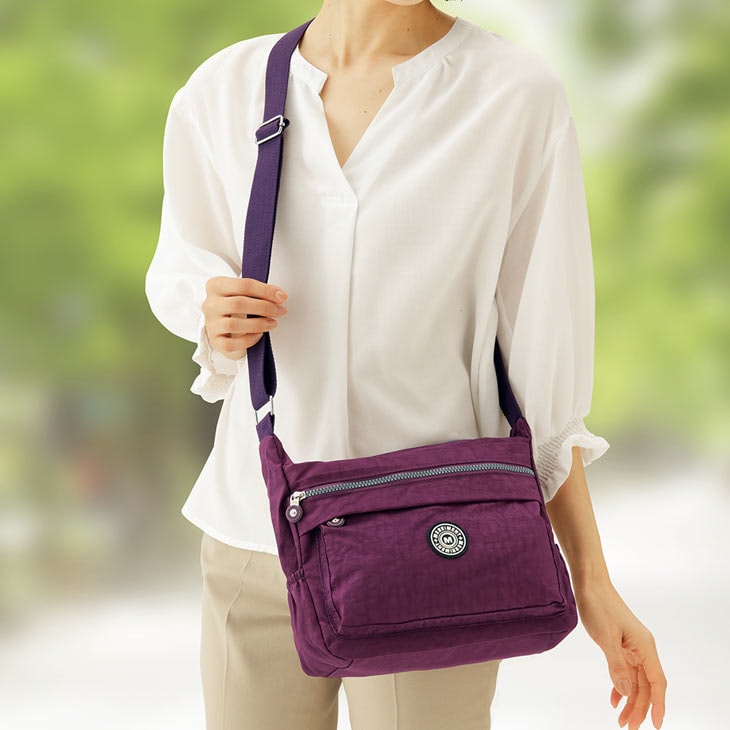軽量カジュアルバッグは、収納に便利な8個のポケットが特徴。貴重品は安心の背面ポケットに収納可能で、普段のお出かけやお買い物に大活躍します。軽量タイプなので疲れにくく、長時間の使用も快適です。シンプルで使いやすいデザインなので、幅広いシーンで活躍すること間違いなしです。 ●色/ブラック、カーキ、パープル ●サイズ/約幅29×高さ22×マチ11cm、ショルダーひもの長さ:約72~136cm ●重さ/約260g ●素材/表:ナイロン、裏:ポリエステル ●製造国/中国製