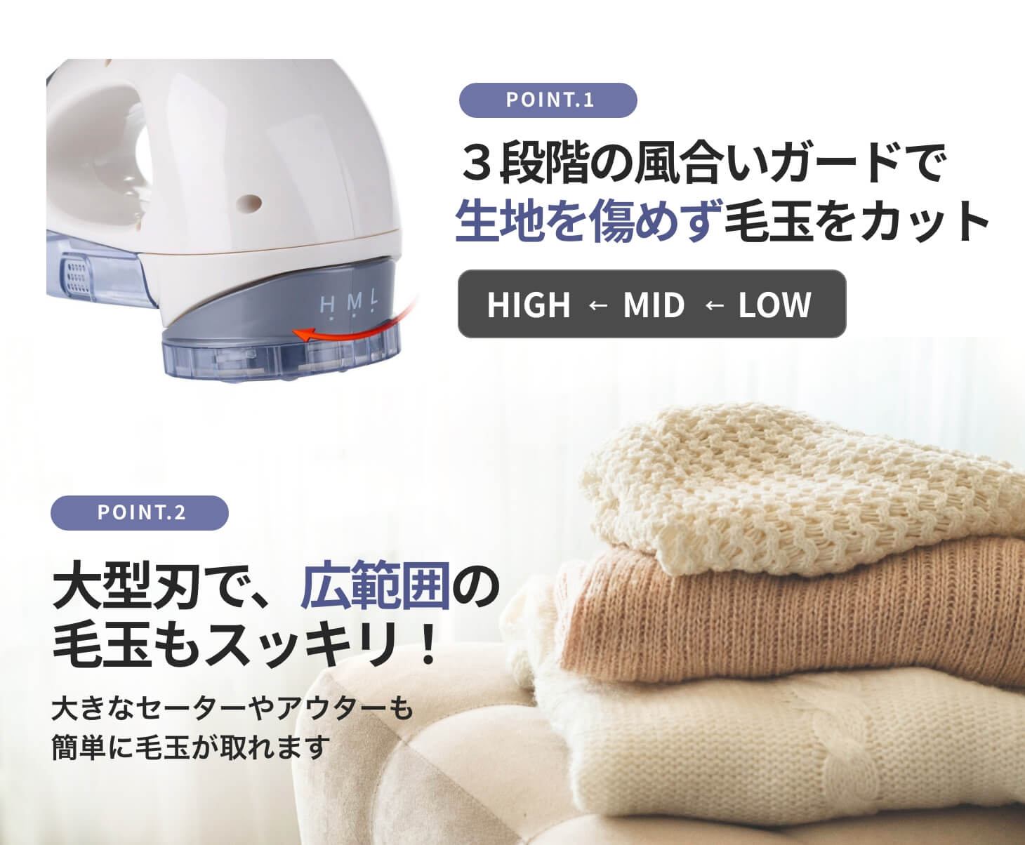 大きなセーターやアウターも簡単に毛玉が取れます。