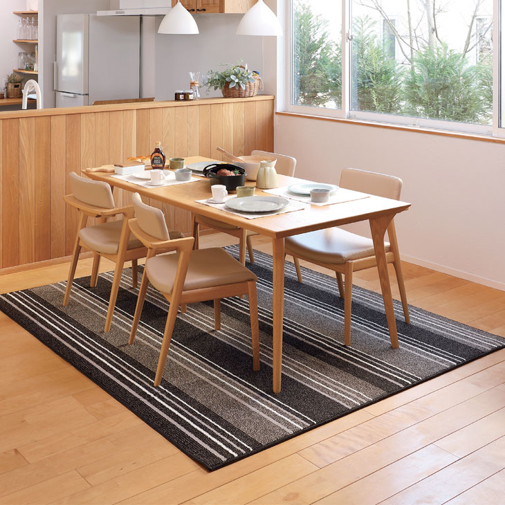 撥水ダイニングラグ ストライプ柄:床を守り、食卓をおしゃれに